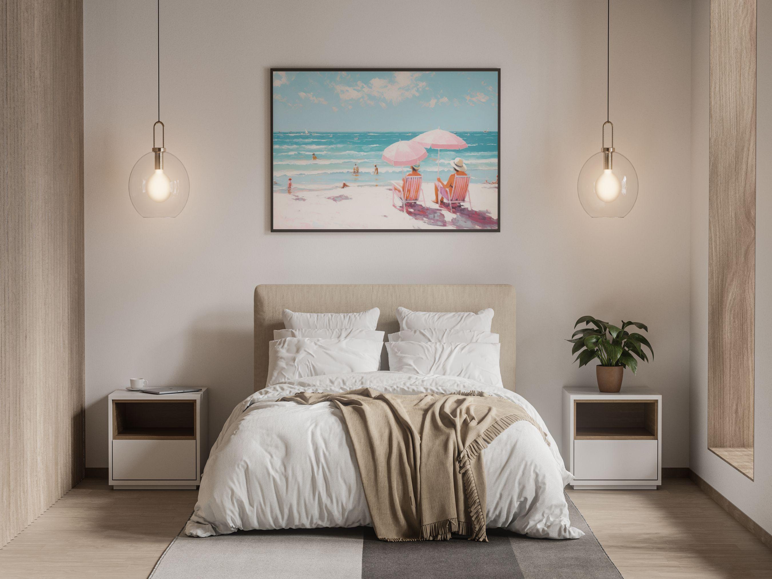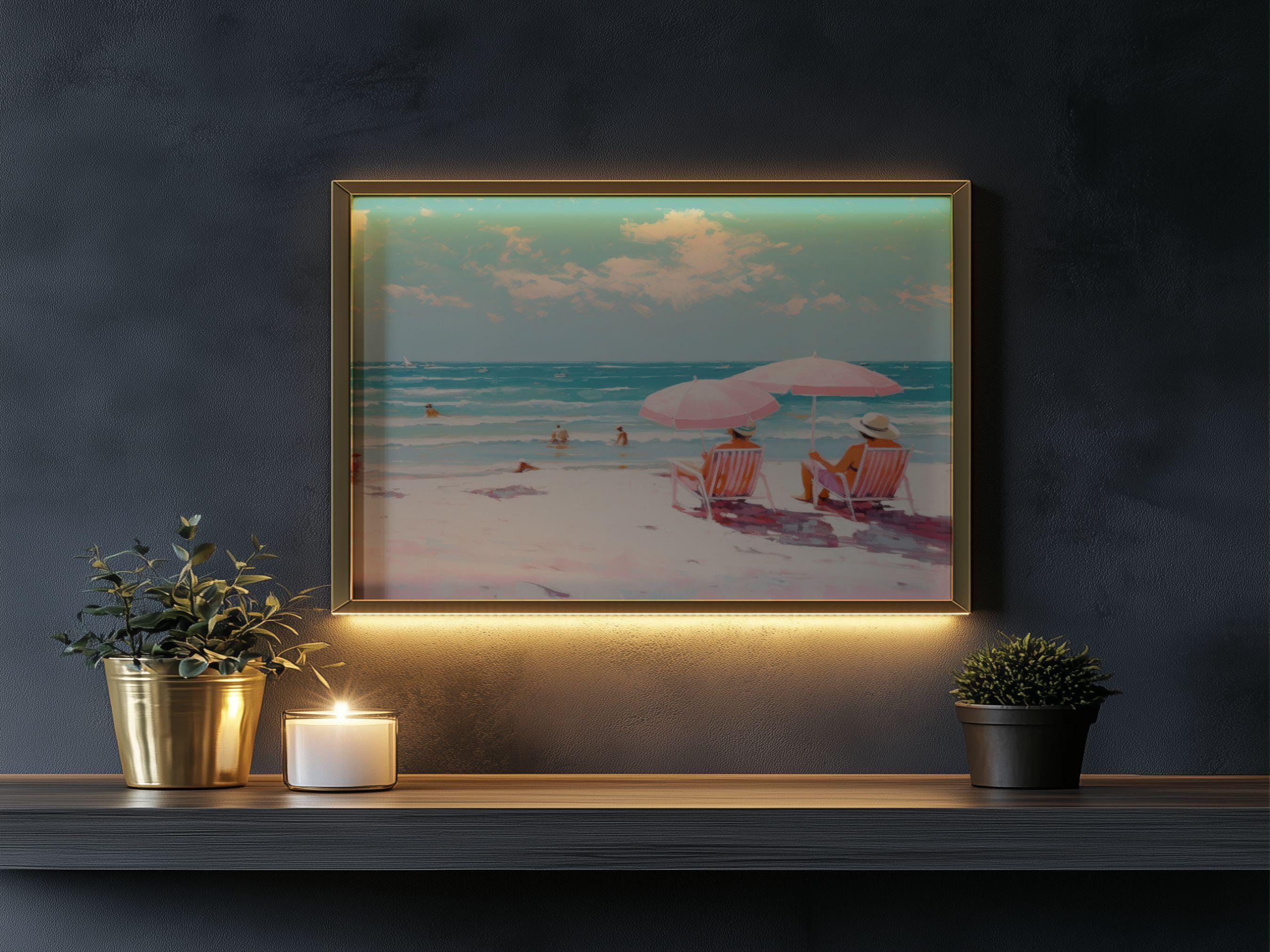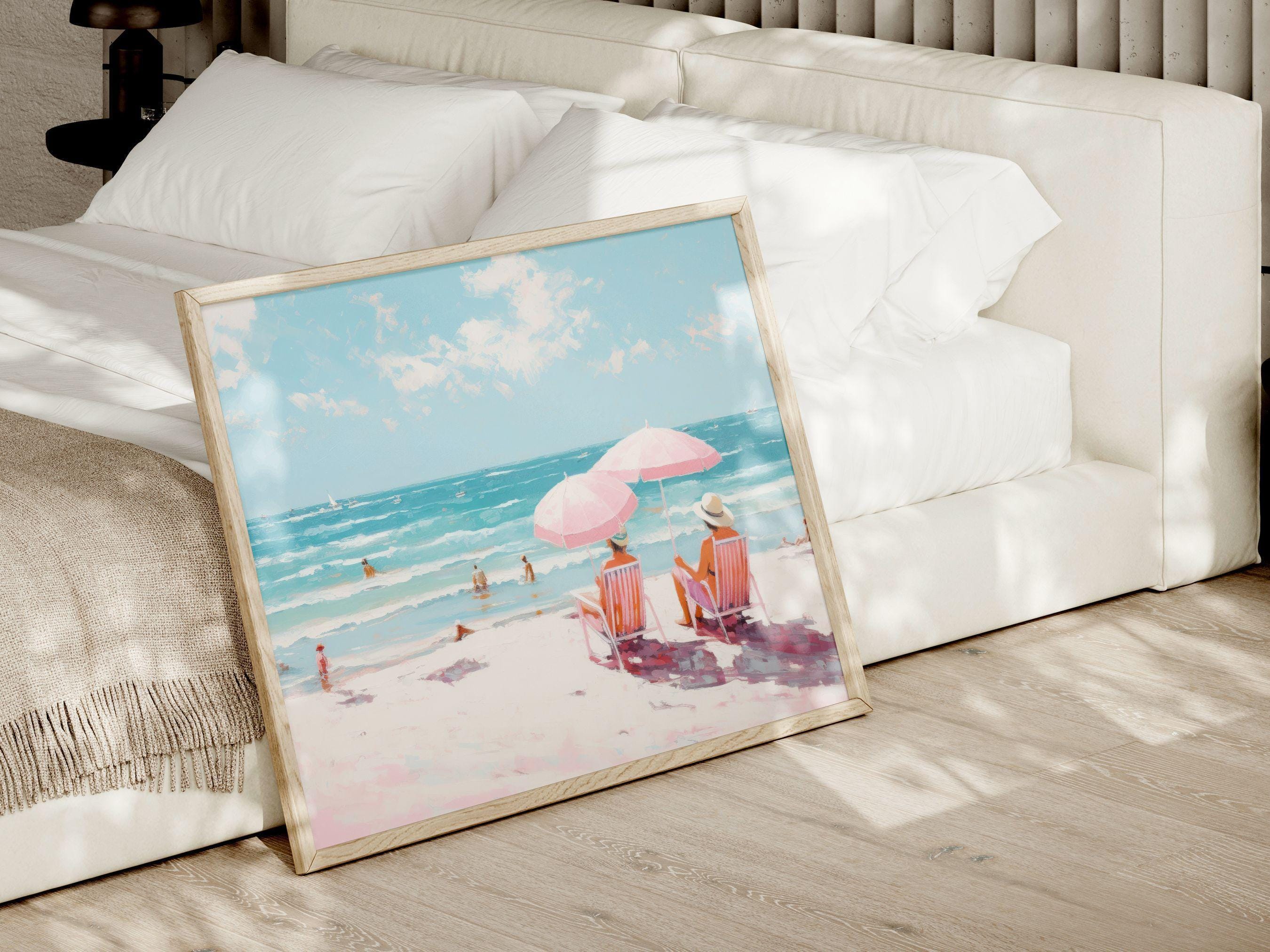Transform your space with this serene coastal wall art that captures the gentle rhythm of ocean waves and the charm of a pink umbrella resting on the shore. Inspired by tranquil seaside escapes, this print blends summer beach decor with nautical landscape elements to bring a soothing, tropical vibe to any room. Perfect for those seeking a peaceful ocean lovers gift, it evokes the calm and warmth of sunlit beach days.