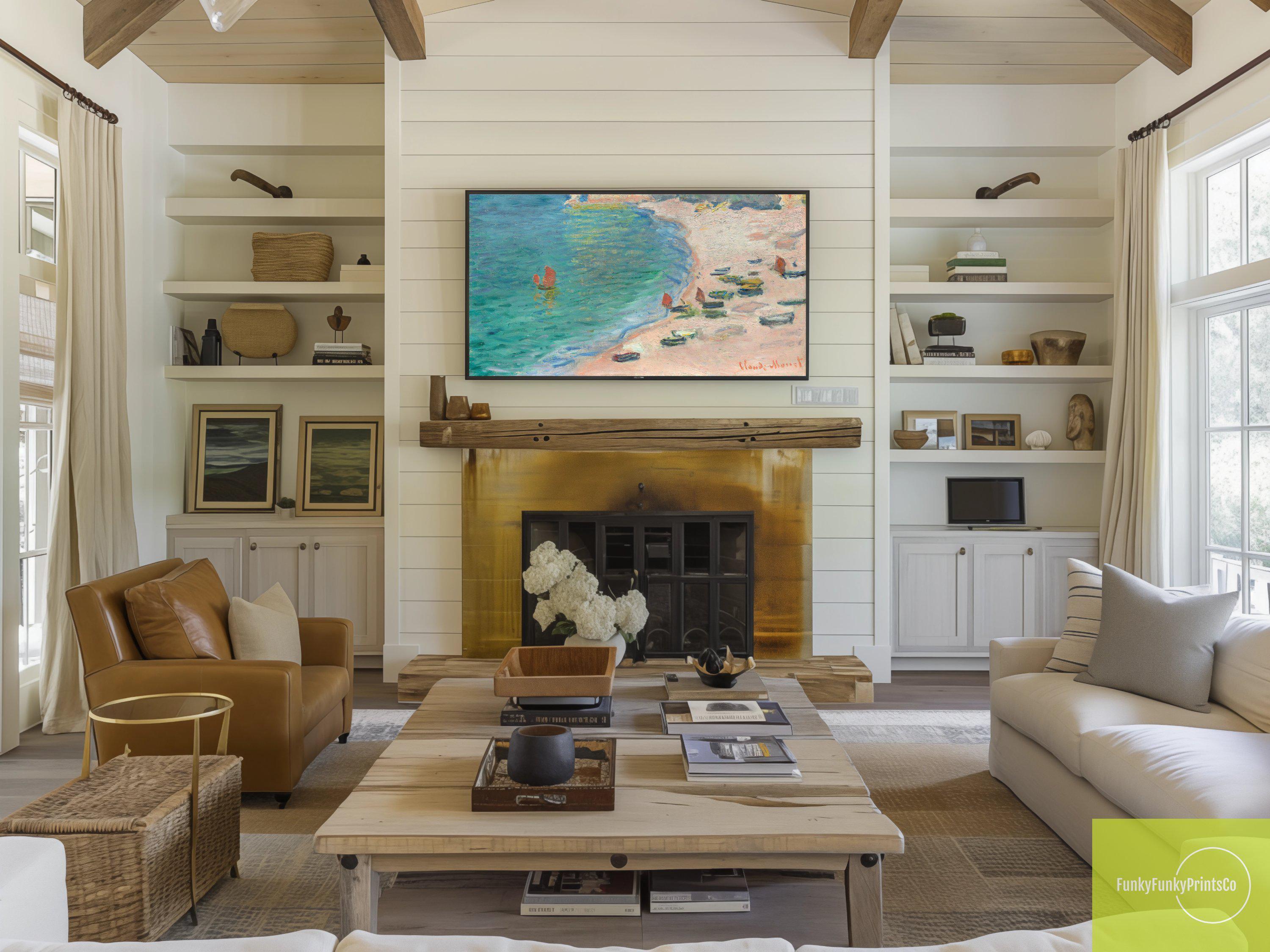 Give your living room a breezy gallery vibe with this Monet-inspired seaside boat painting—soft brushwork, shimmering water, and gentle, sunlit hues tailored for Samsung The Frame. Optimized for crisp 4K detail and natural color, it brings relaxed coastal elegance to any space. 🌊🎨