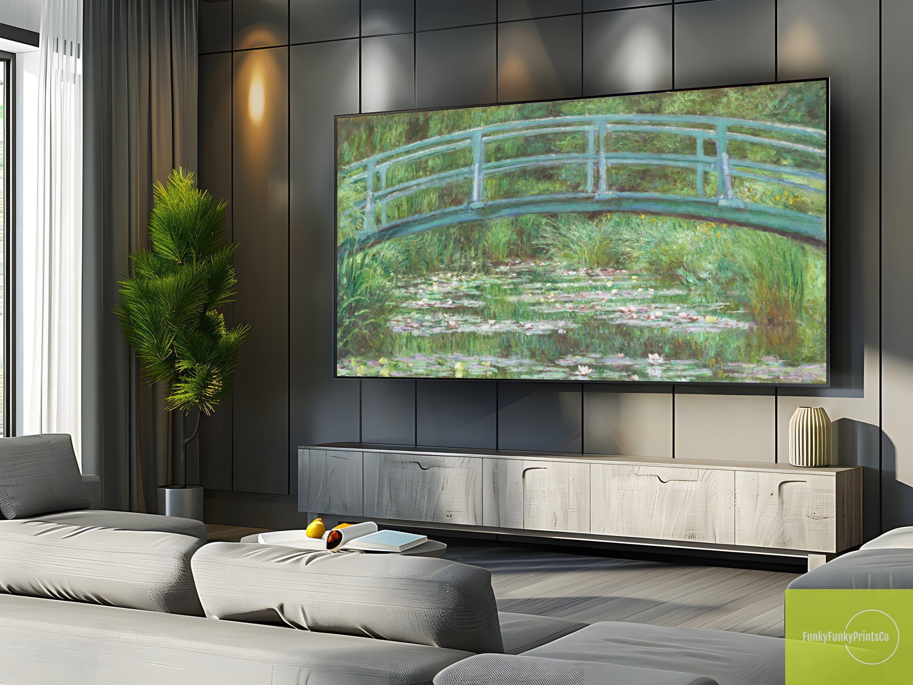 Step into a world of tranquility with this Japanese footbridge digital art, designed to transform your living room into a serene sanctuary. This frame TV art captures the delicate beauty of nature in stunning 4K digital print, perfect for enhancing modern living room spaces or creating a peaceful home theater ambiance. With its ultra sharp visuals and elegant home artwork style, this piece offers a seamless blend of Asian inspired decor and contemporary digital download art.