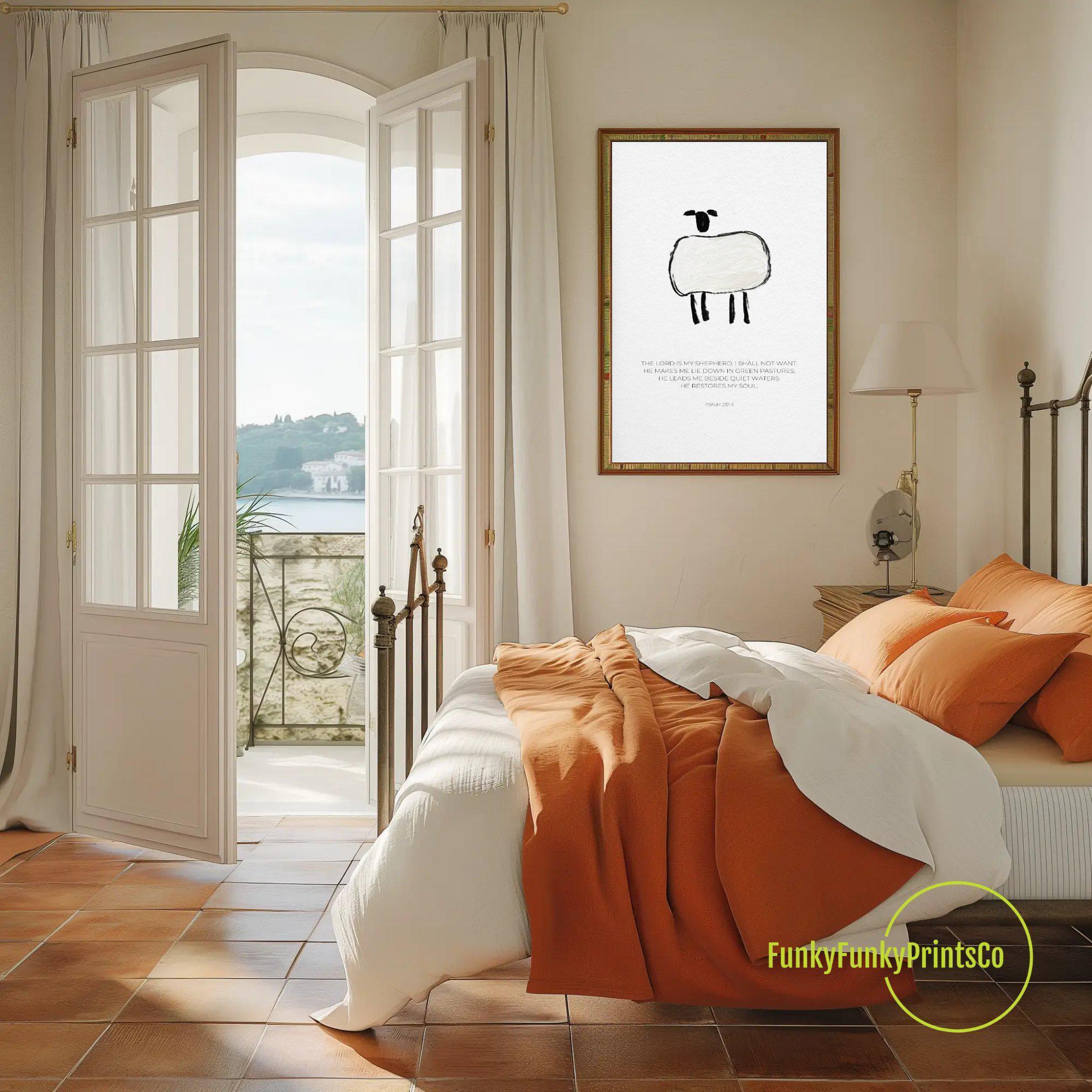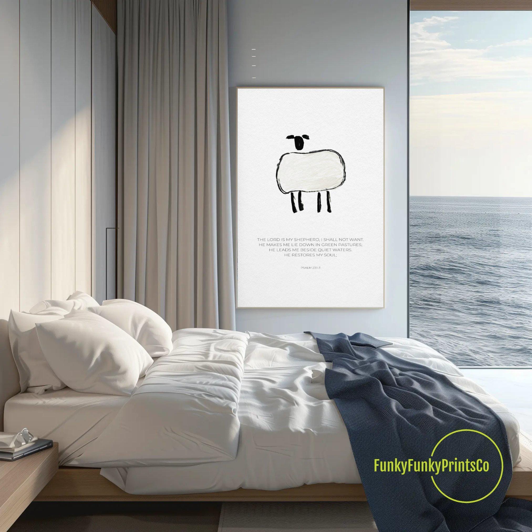 Discover a timeless piece of spiritual home decor with our elegant printable scripture inspired by Psalm 23. This black and white art offers a modern christian wall art option that beautifully blends faith and style, perfect for uplifting any room. Designed as a digital download, this shepherd wall art brings inspirational quotes and religious decor into your space with ease and grace.