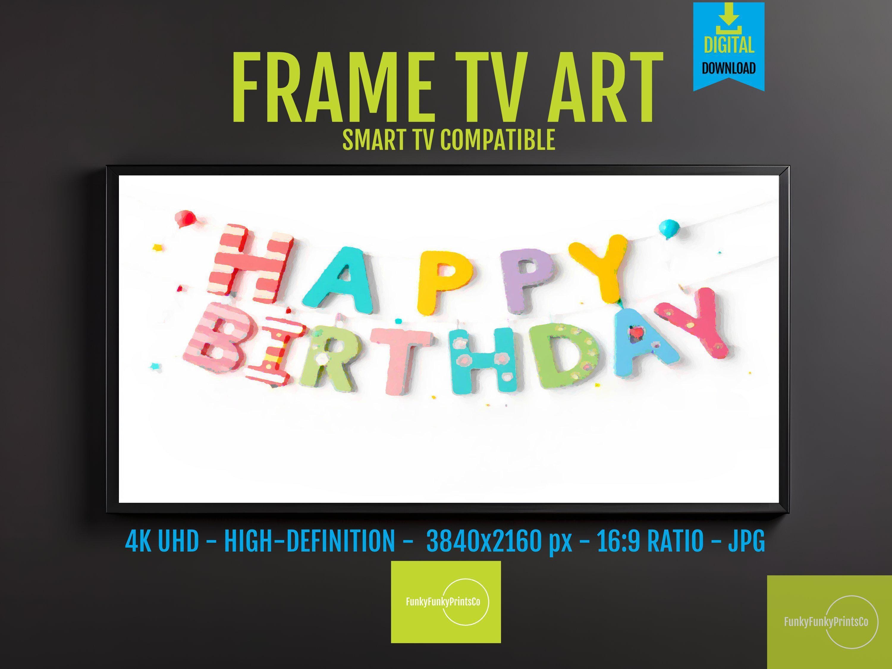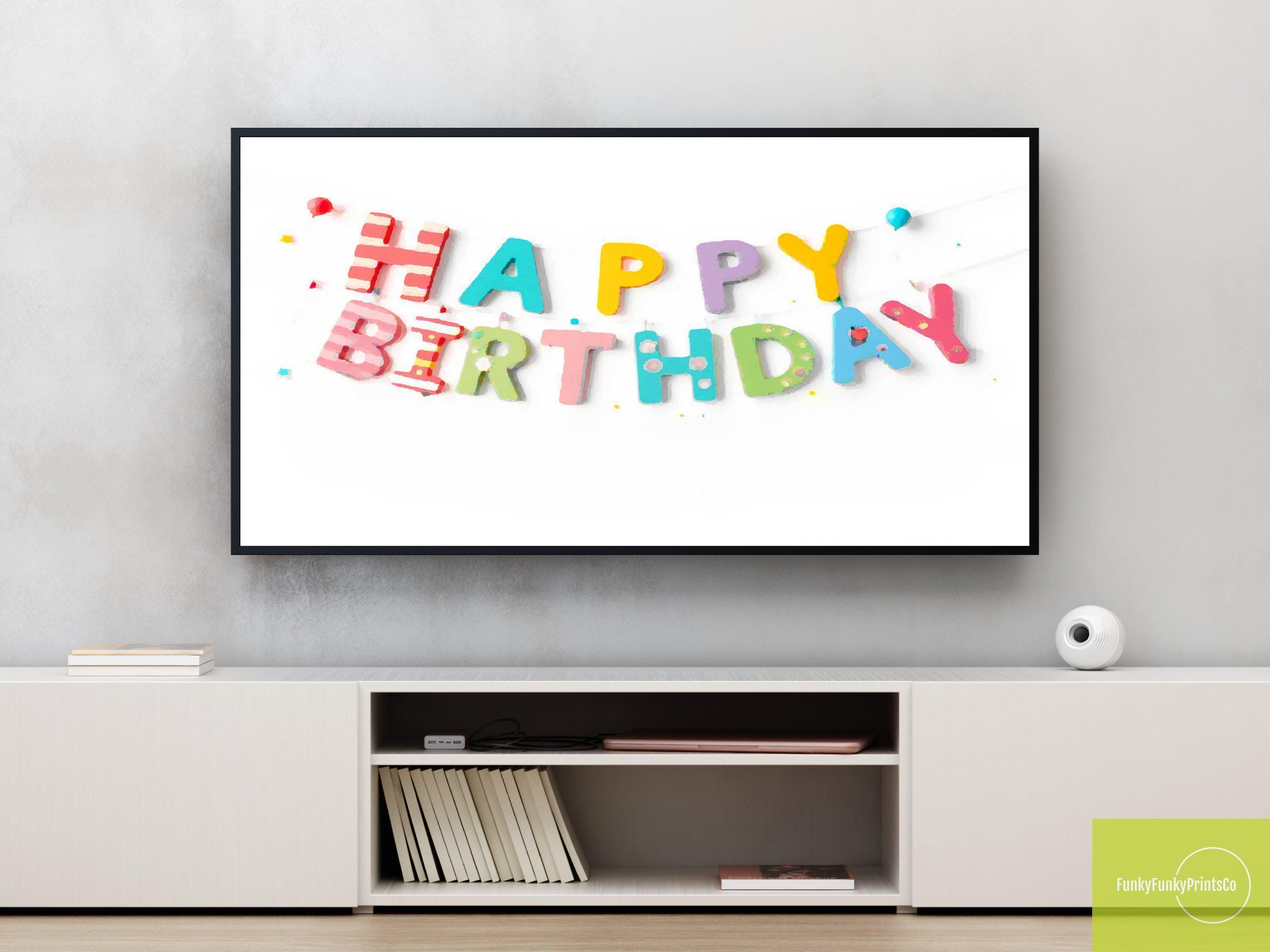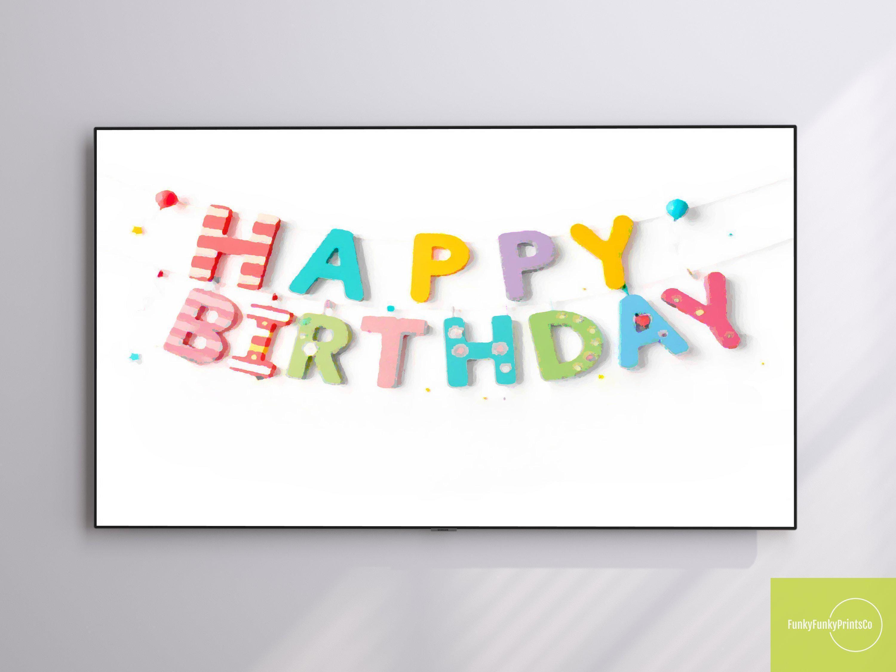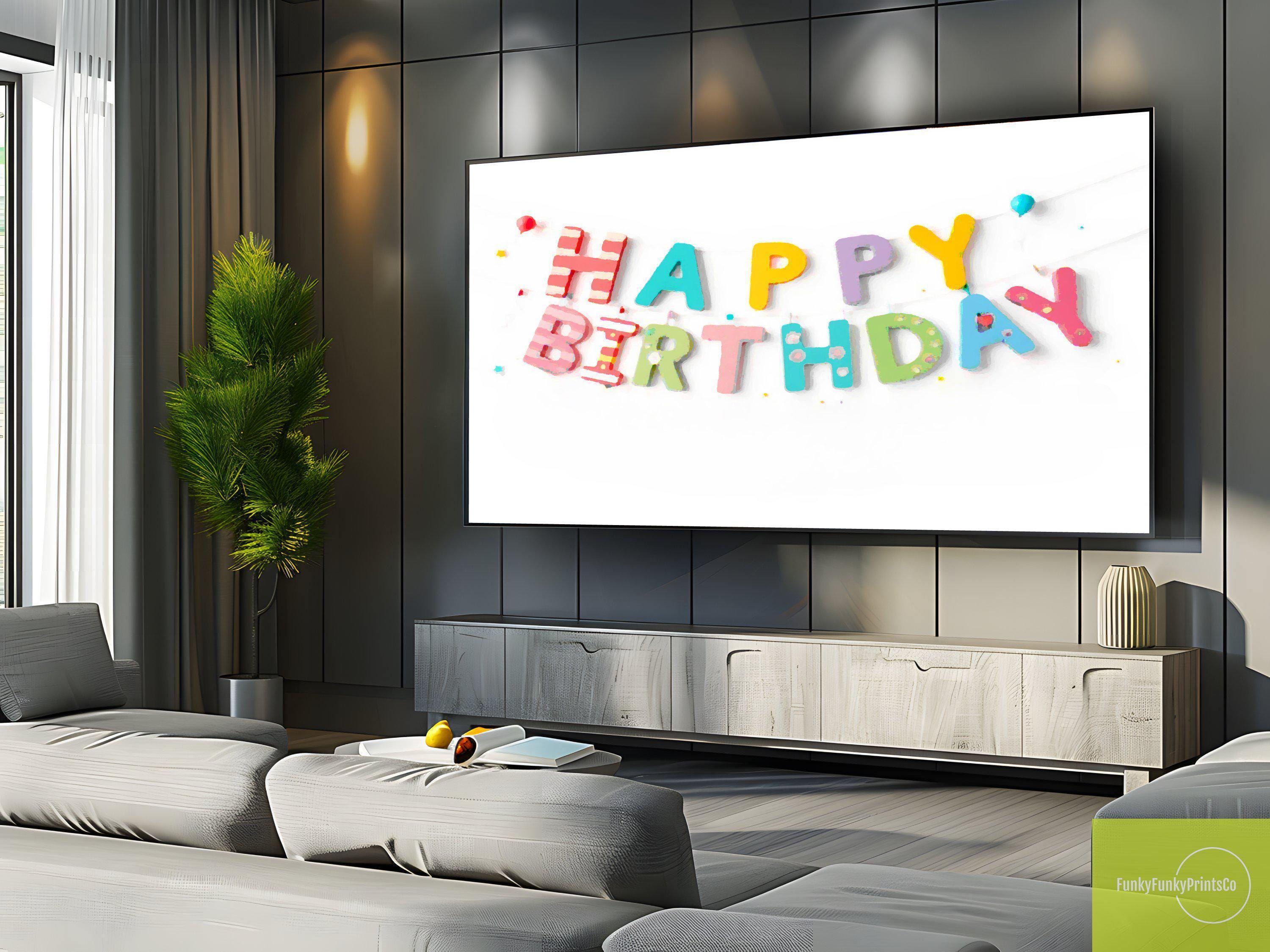 Celebrate your special day with a charming digital birthday banner designed to transform your Samsung Frame TV into a festive centerpiece. This soft pastel celebration art brings a custom party vibe to any living room or kids party decor, effortlessly enhancing your space with instant download convenience. Whether for an adult birthday sign or a lively gathering, this 4K UHD screensaver offers a stylish, reusable alternative to traditional decorations.