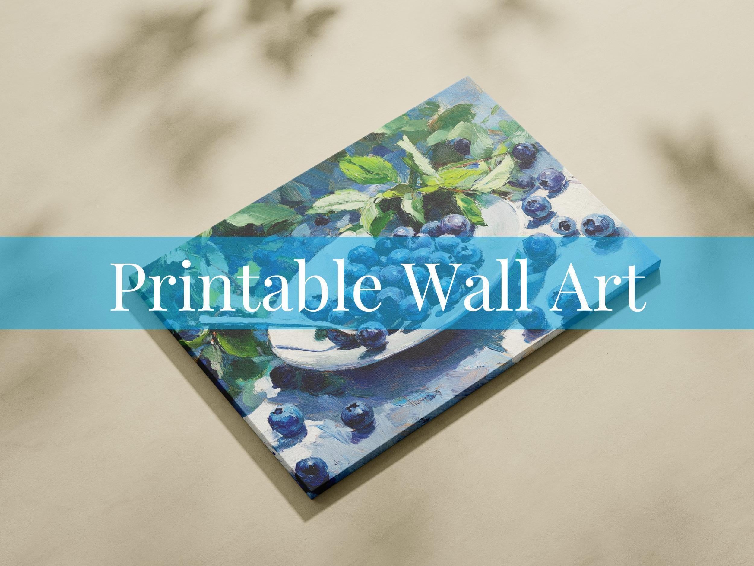 Discover the vibrant charm of this blueberries food art print, a perfect addition to your kitchen decor that brings fresh energy and colorful nature art into your home. Inspired by the rich hues and natural beauty of fresh blueberries, this digital artwork captures the essence of vibrant colors decor with expressive brushwork that adds depth and texture. Whether displayed digitally or printed at home, itβs designed to brighten any space with its lively composition and inviting atmosphere.