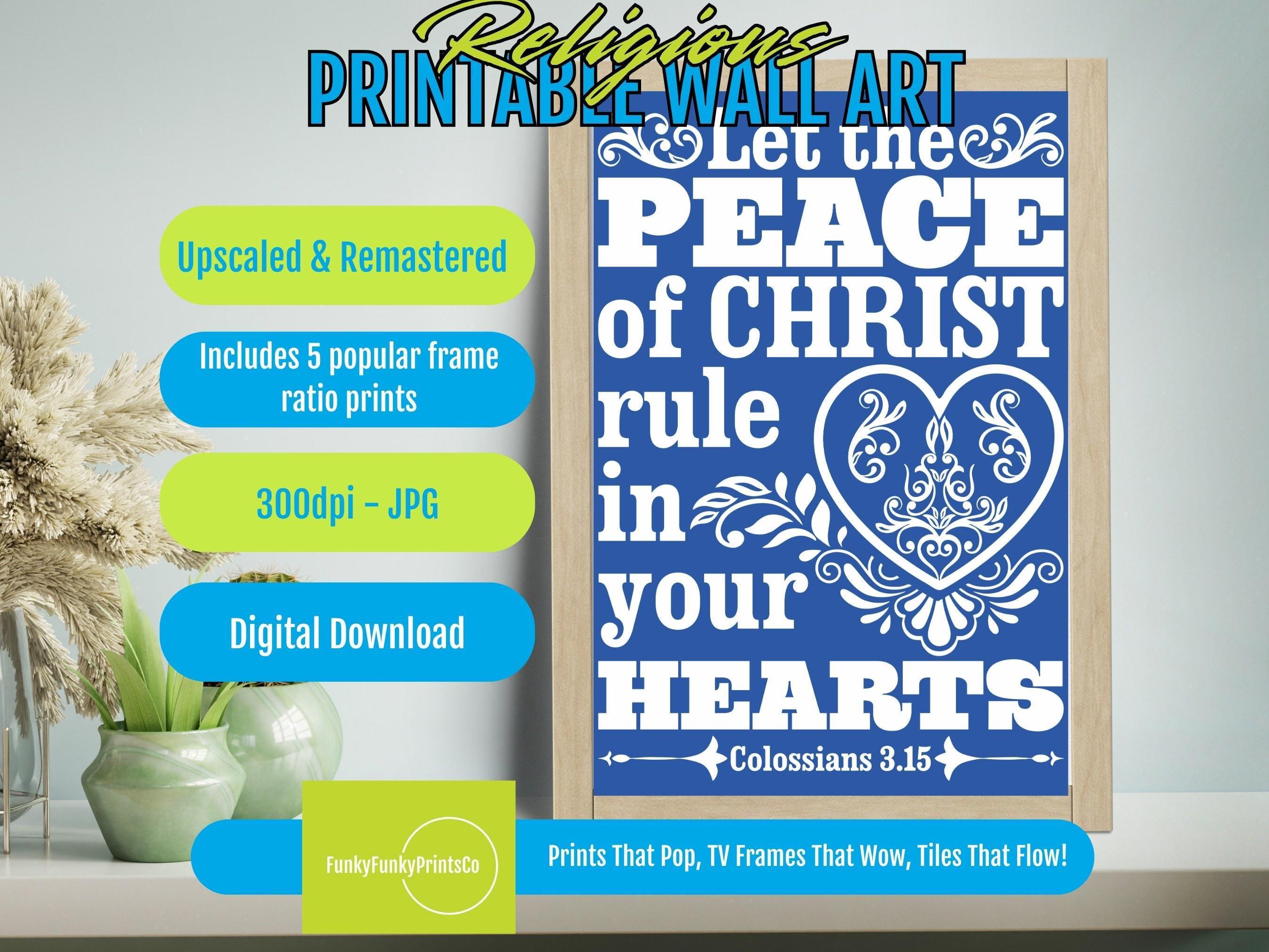 Discover a serene touch for your space with this uplifting printable art, inspired by the timeless message of peace. Crafted to bring calm and inspiration, this Christian art beautifully incorporates heart decor elements and a motivational quote to brighten your day. Perfect as religious wall art, it invites the peace of Christ to gently rule in your hearts.