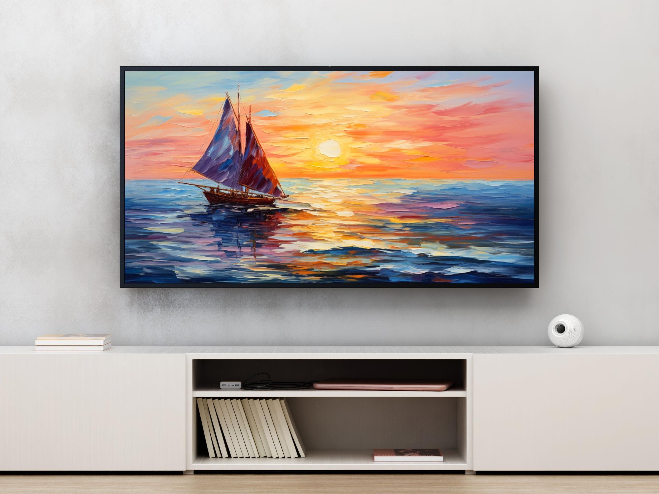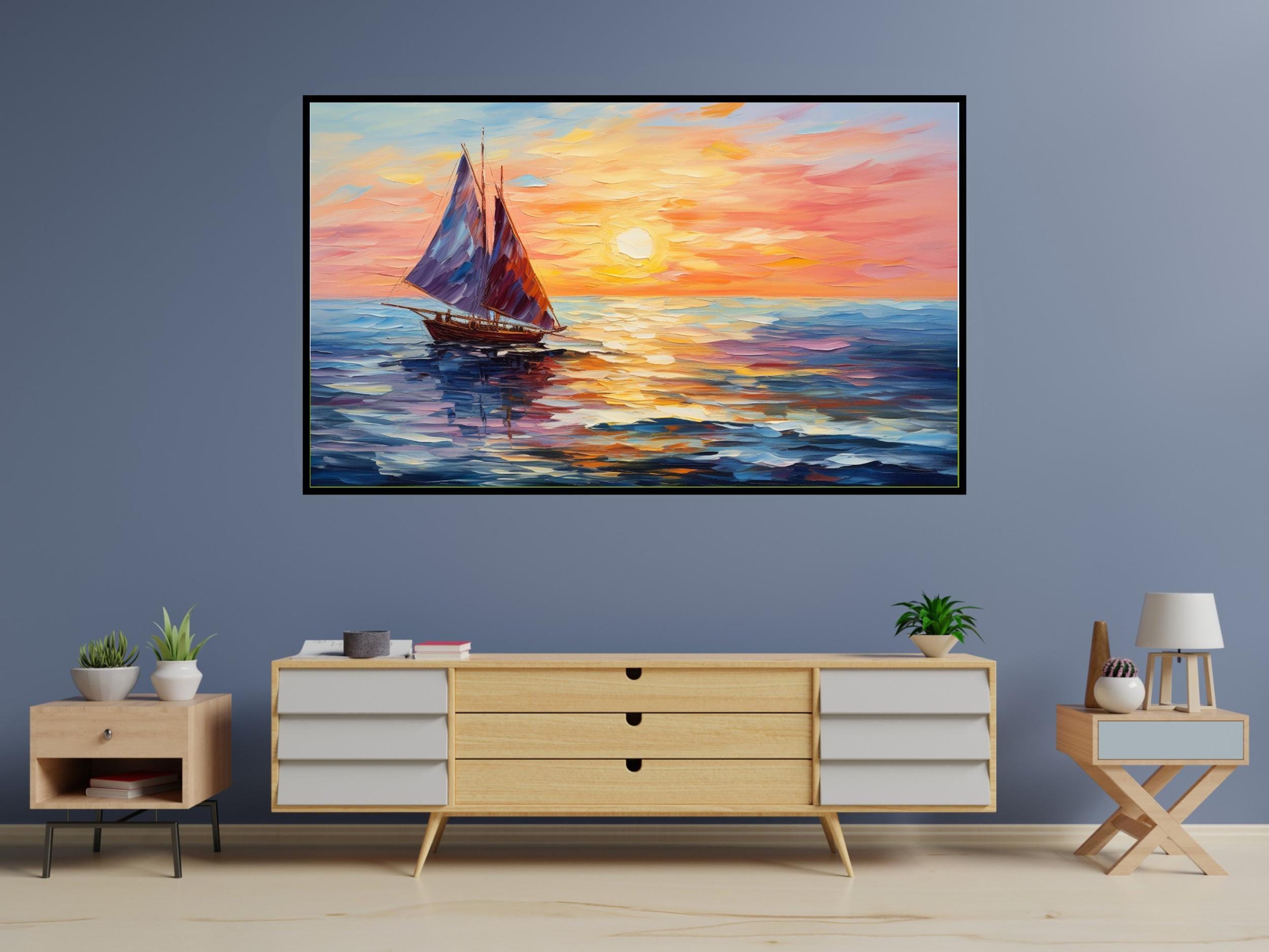 Turn your Samsung Frame TV into a tranquil ocean escape with this sunset seascape digital download. Bursting with color, movement, and warmth, this artwork brings a coastal summer vibe into any room. Ideal for beach homes, modern interiors, or anyone dreaming of the sea. π