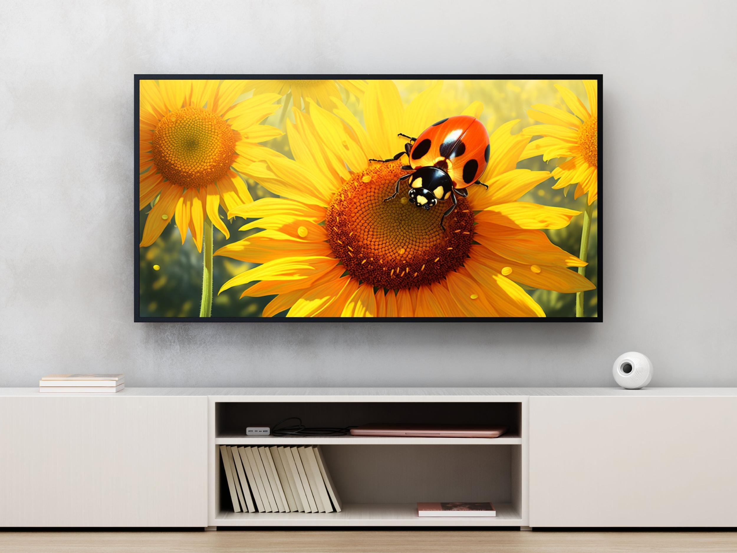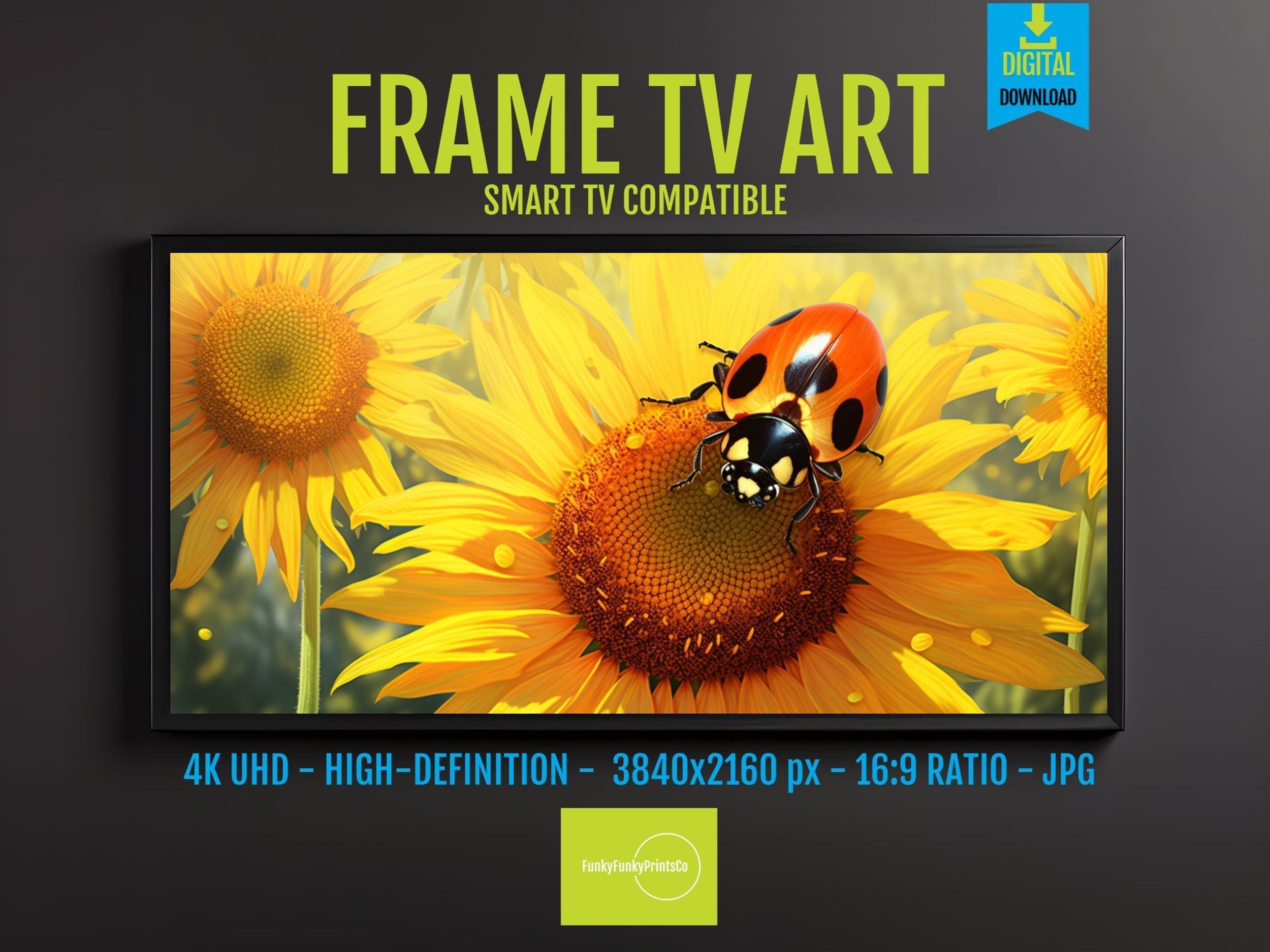 Immerse yourself in the vibrant beauty of nature with this bright sunflowers digital art, featuring a charming ladybug screensaver that brings life to your Samsung Frame TV. Inspired by the delicate wonders of garden flowers, each bloom is rendered in rich yellow hues with realistic shading, creating a captivating 4K UHD wall art experience. This instant download art transforms your space with colorful, nature-inspired charm that's perfect for floral home accents.