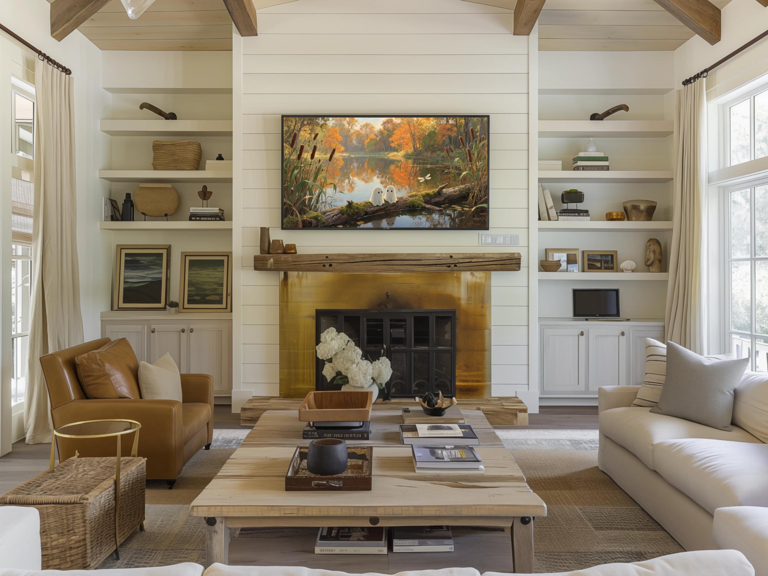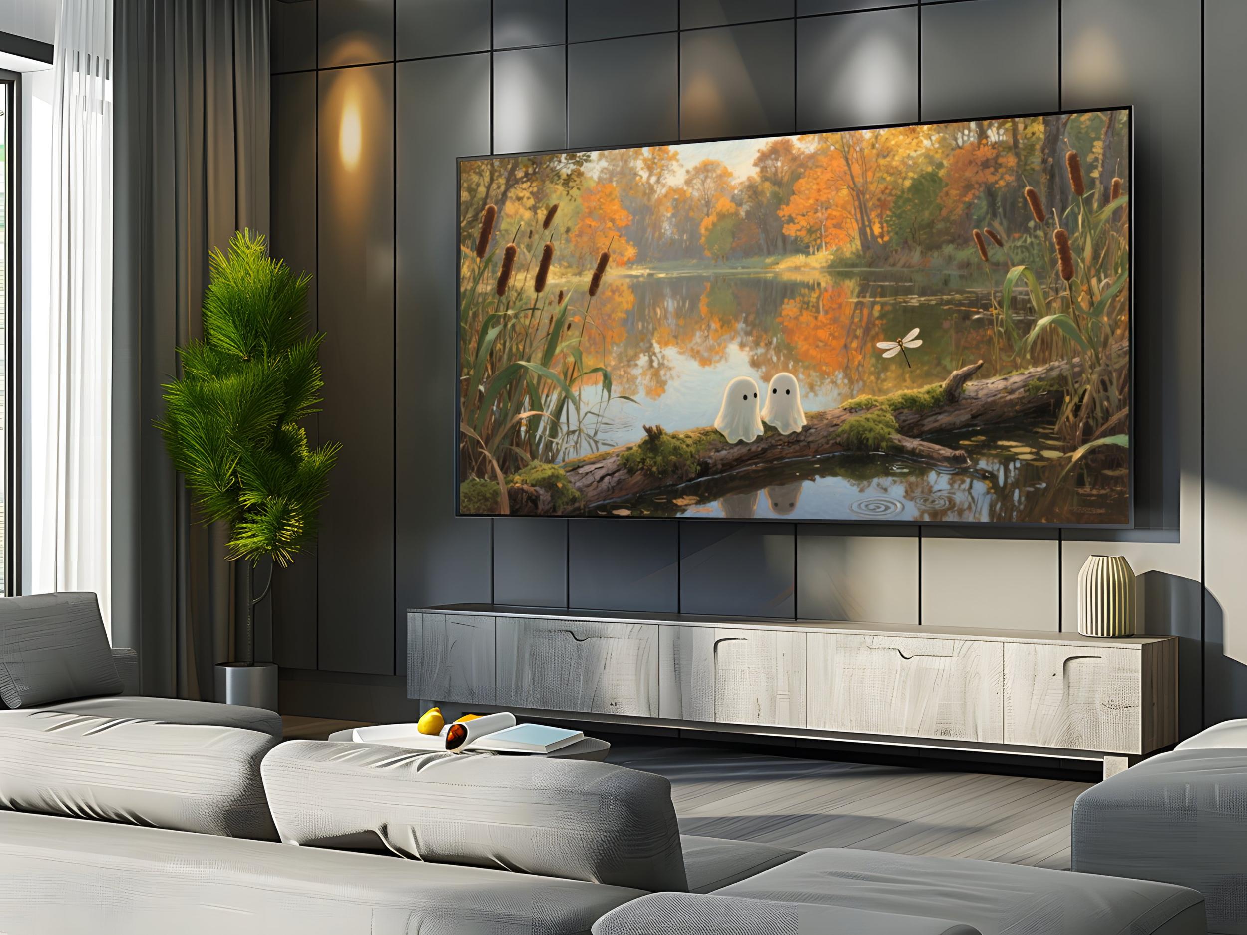 Designed as a high-quality digital art 4k uhd screensaver for your samsung frame tv, this nature scenery is perfect for creating a serene environment at home. The whimsical characters and autumn landscape blend realism and playful creativity, making this a unique addition to your digital decor.