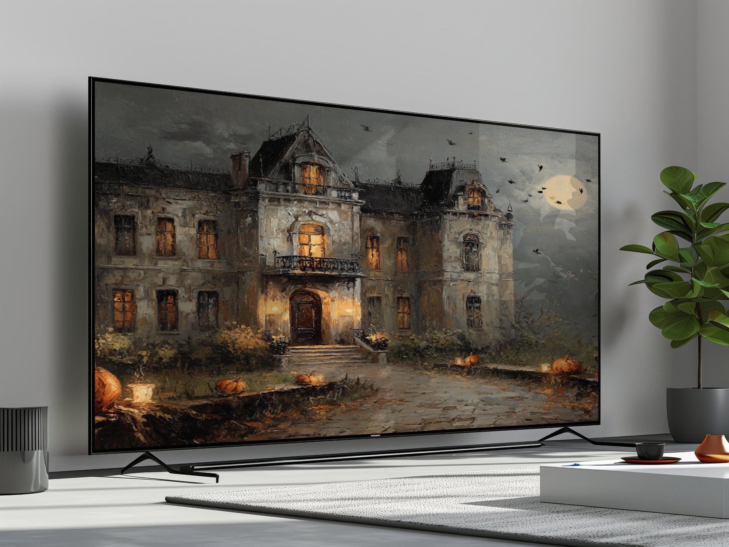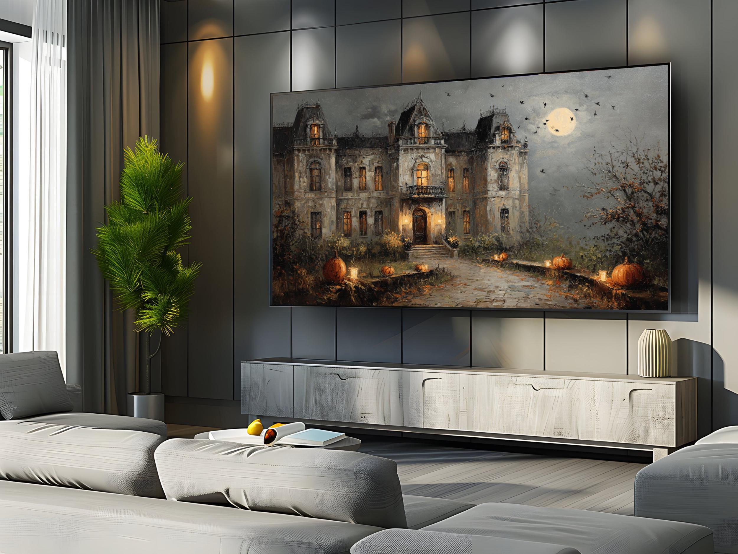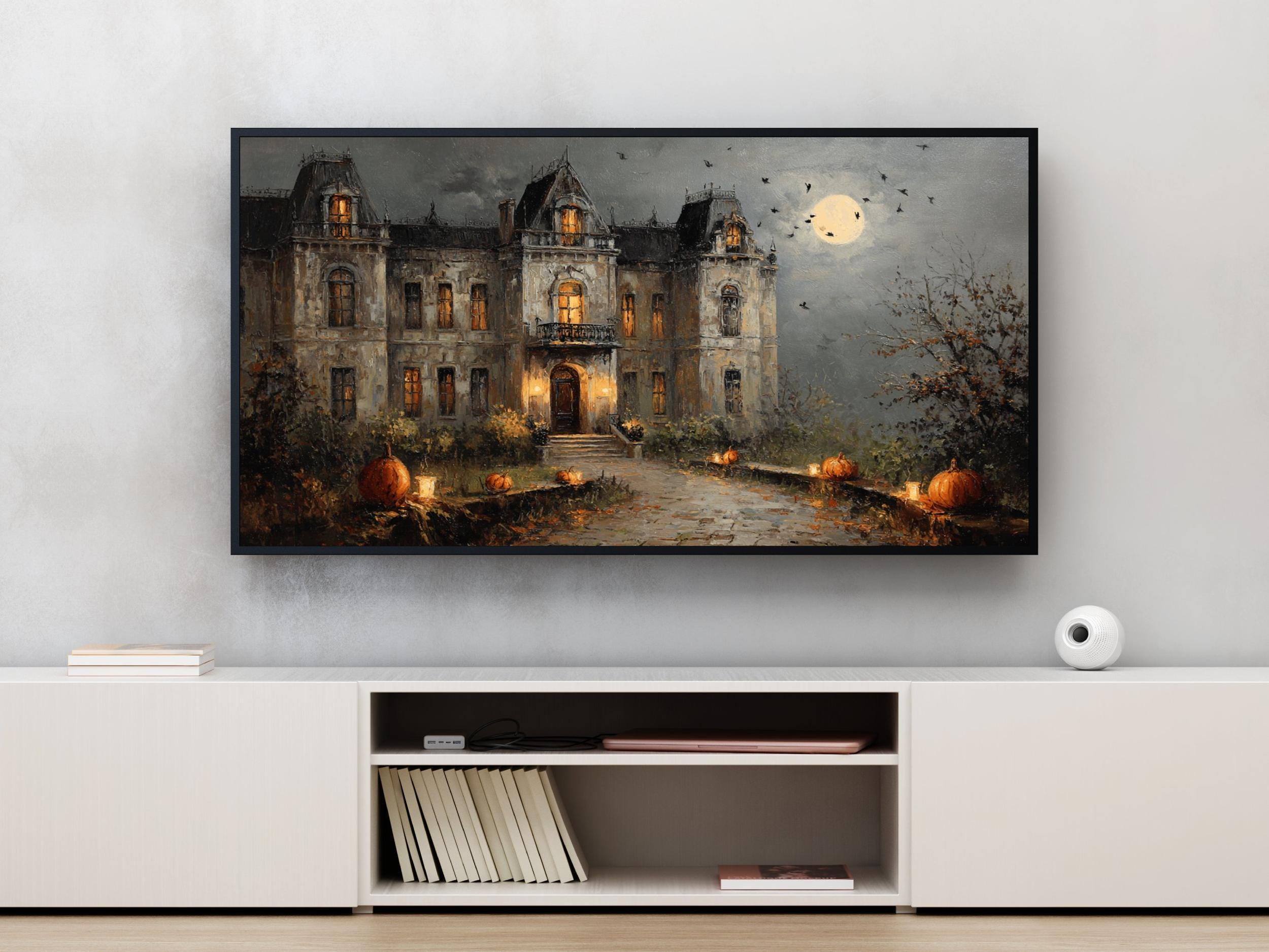 Step into a world of eerie elegance with this mesmerizing gothic mansion screensaver, where bats flying at night add a thrilling touch to the haunting digital art. Follow the glowing pumpkin path that invites you deeper into this moody gothic style scene, rendered in stunning 4k UHD clarity. Perfect for transforming your space with a moonlit mansion glow, this piece captures the essence of classic Halloween ambiance.