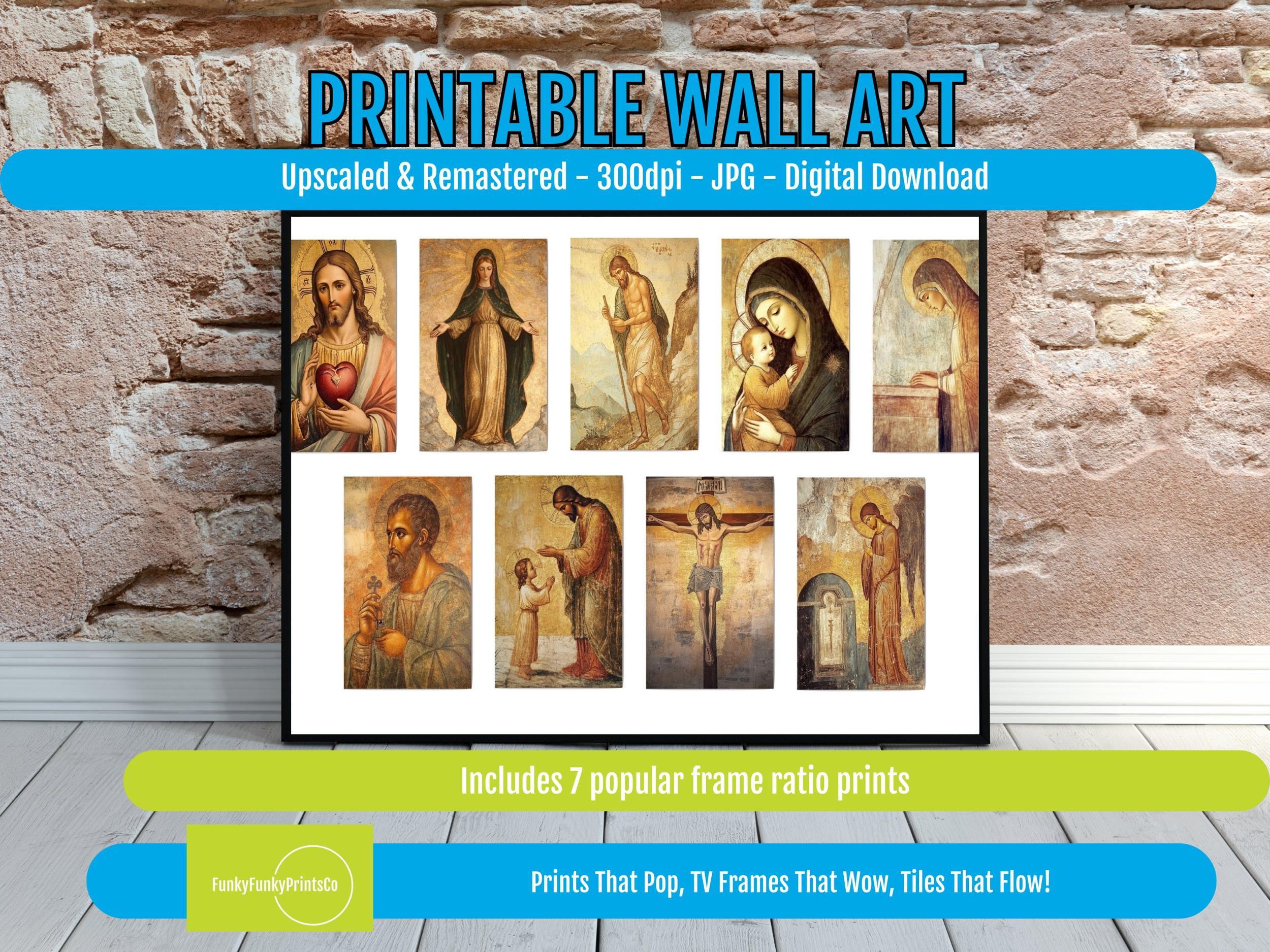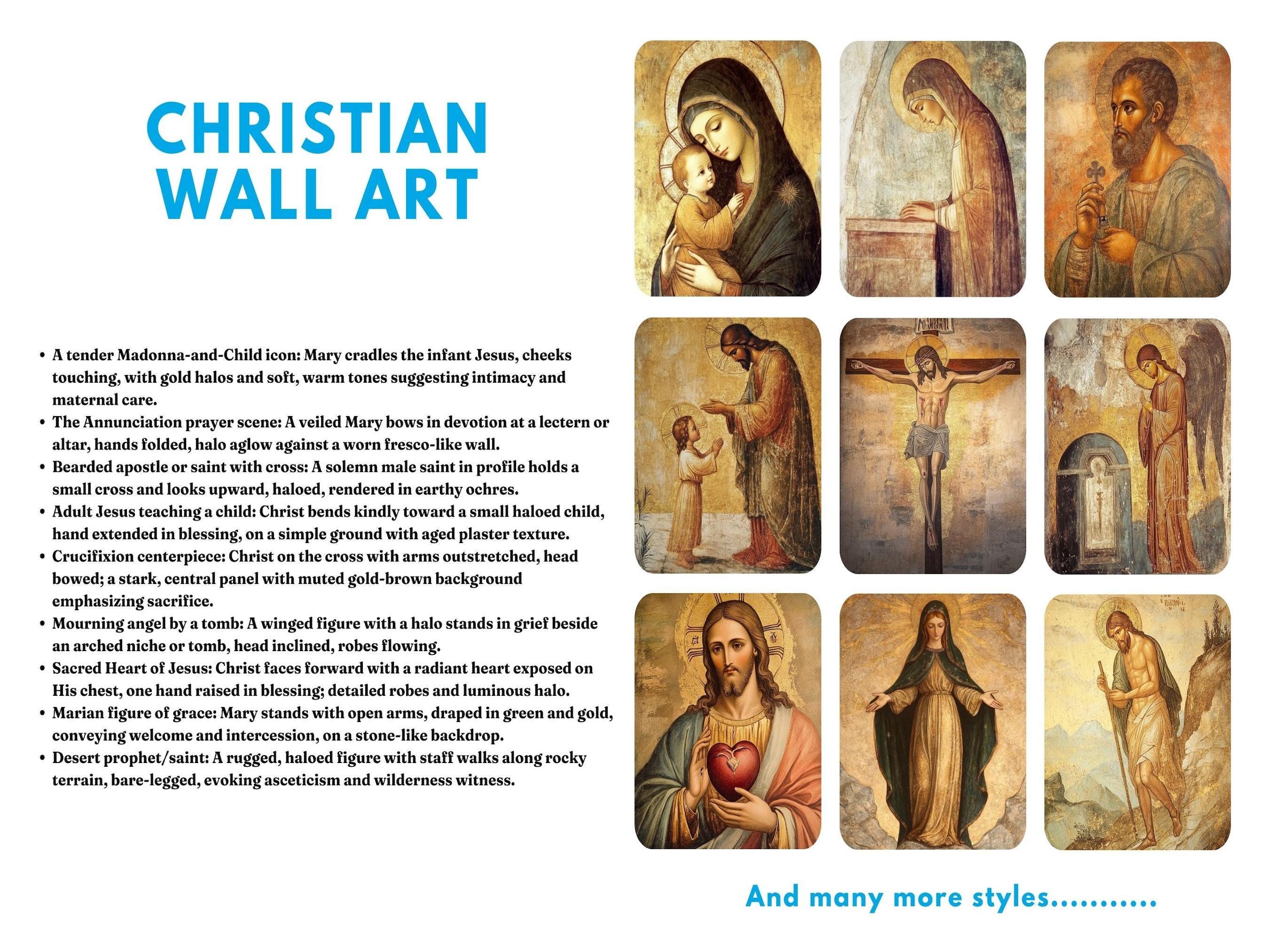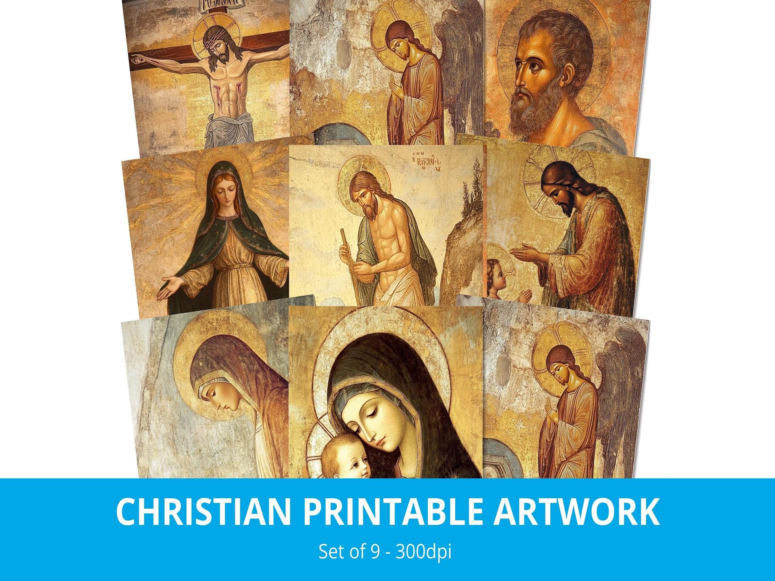 - ✅ Features iconic religious art: Jesus Christ, Virgin Mary, saints, and angelic figures highlighting compassion and faith