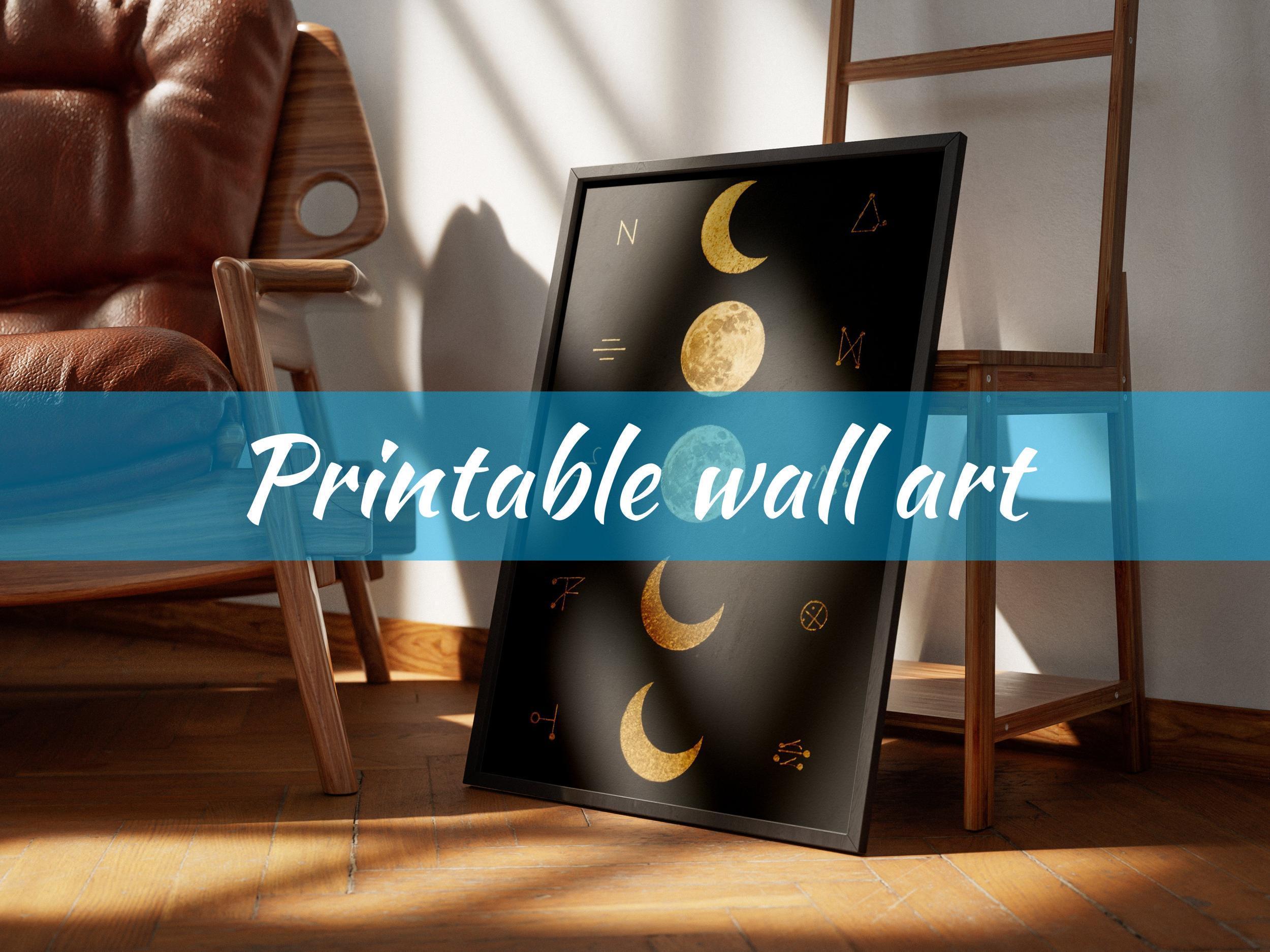 Channel calm, cosmic energy with this Golden Moon Phases art print—mystical celestial styling, clean minimal layout, and warm metallic-inspired hues for a chic boho accent. Perfect for bedrooms, meditation corners, nurseries, and modern entryways. Instant digital files make decorating effortless ✨🌙