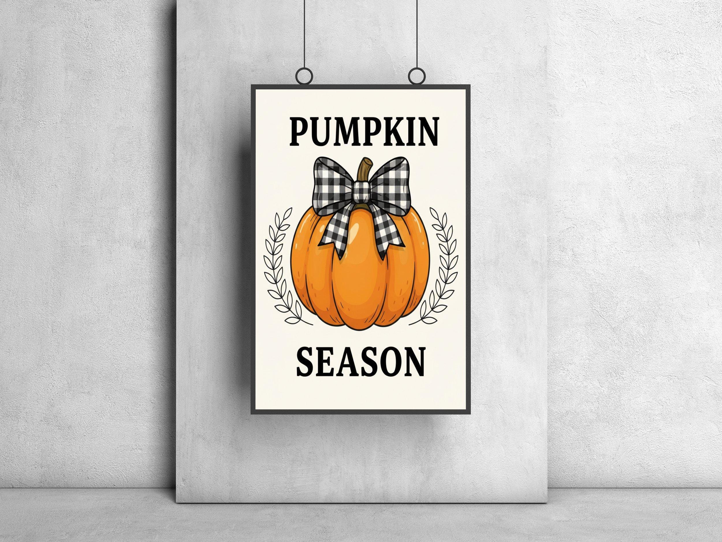Above and below the pumpkin, the words "PUMPKIN" and "SEASON" are written in bold, black letters, emphasizing the autumnal spirit. The light cream background creates a lovely contrast with the vibrant pumpkin and text, resulting in cheerful art that's easy to enjoy. This fall printable is cartoonish in style, featuring playful and colorful elements, making it a unique piece of christian wall art or simply an uplifting addition to your seasonal collection.