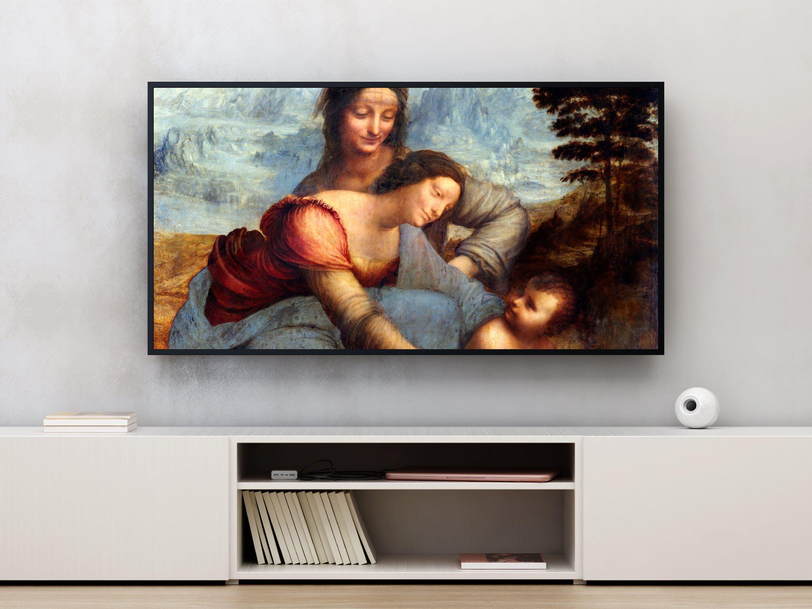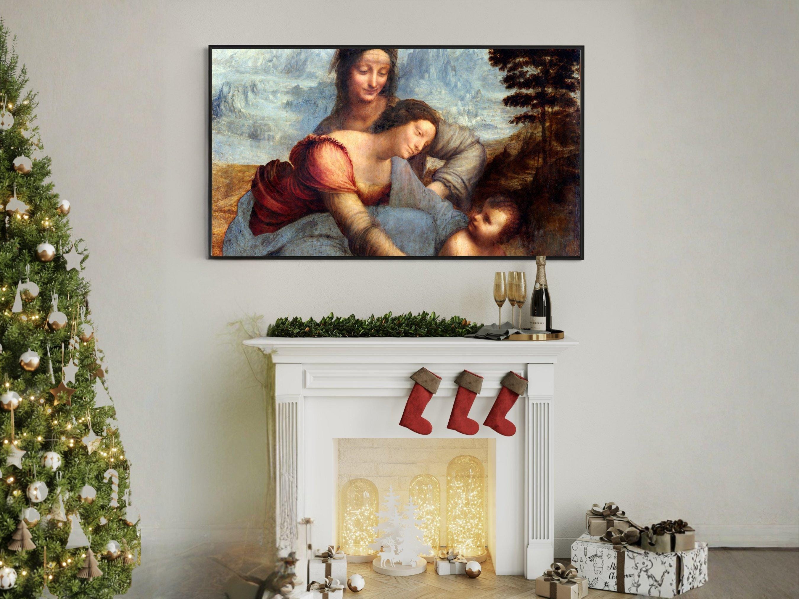 Experience the tender beauty of the timeless bond between mother and child with this serene digital art download, designed specifically for your Samsung Frame TV. This high resolution 4K artwork captures a classical Renaissance-inspired scene, evoking calm and warmth through its muted colors decor. Perfect for those seeking joyful home decor that brings emotional depth and elegance to any space.