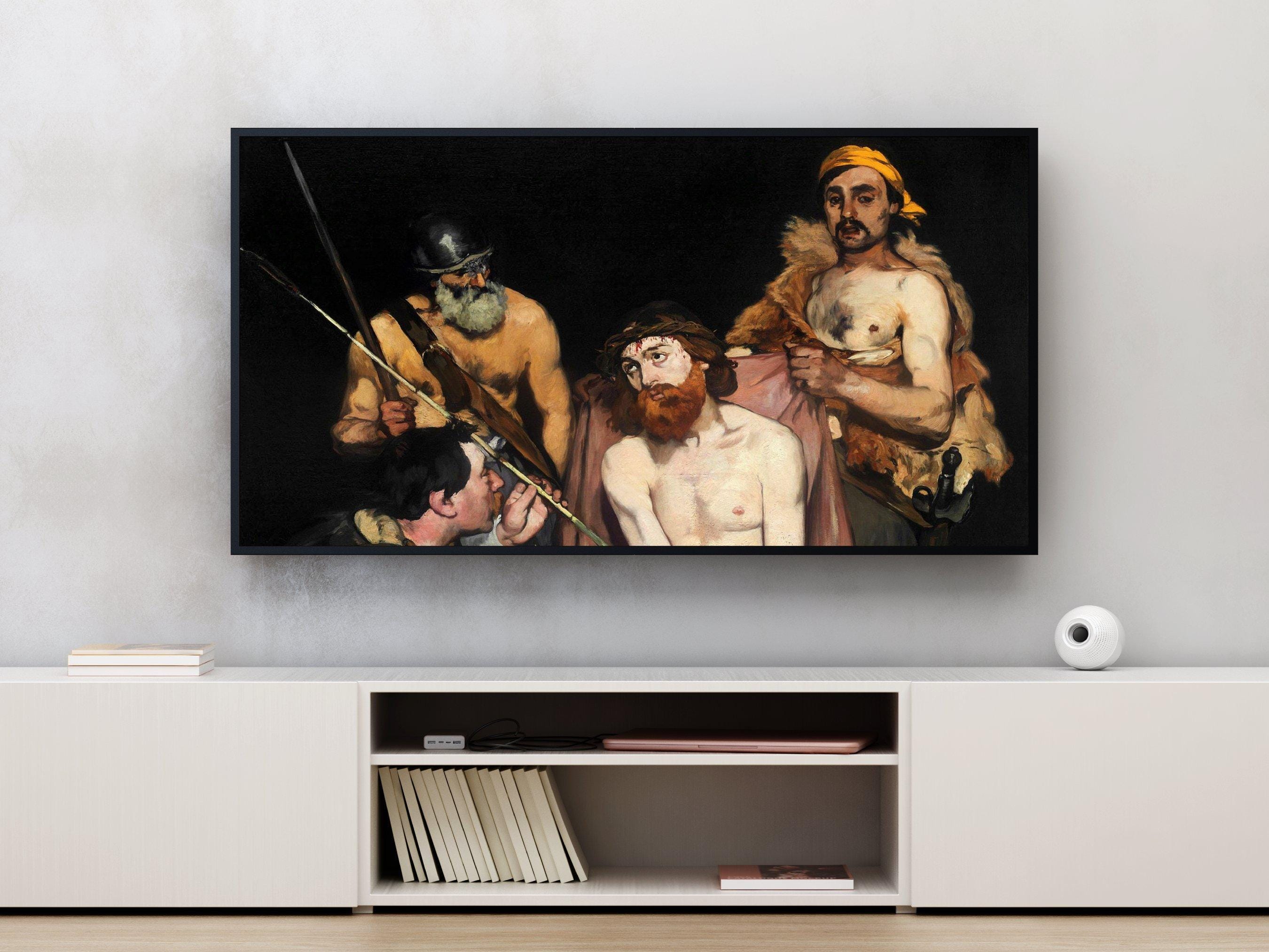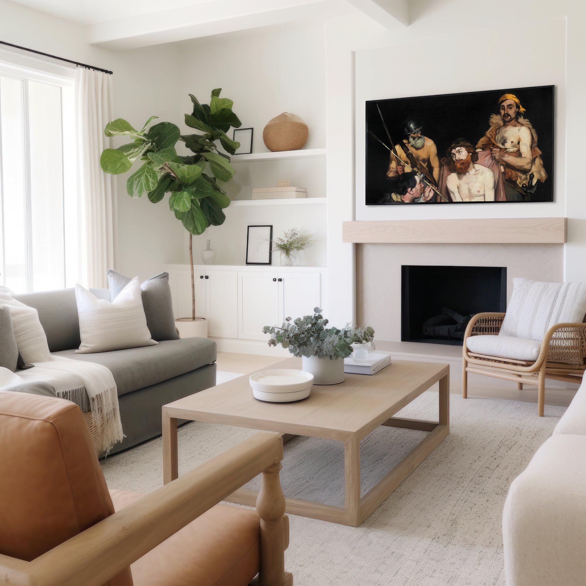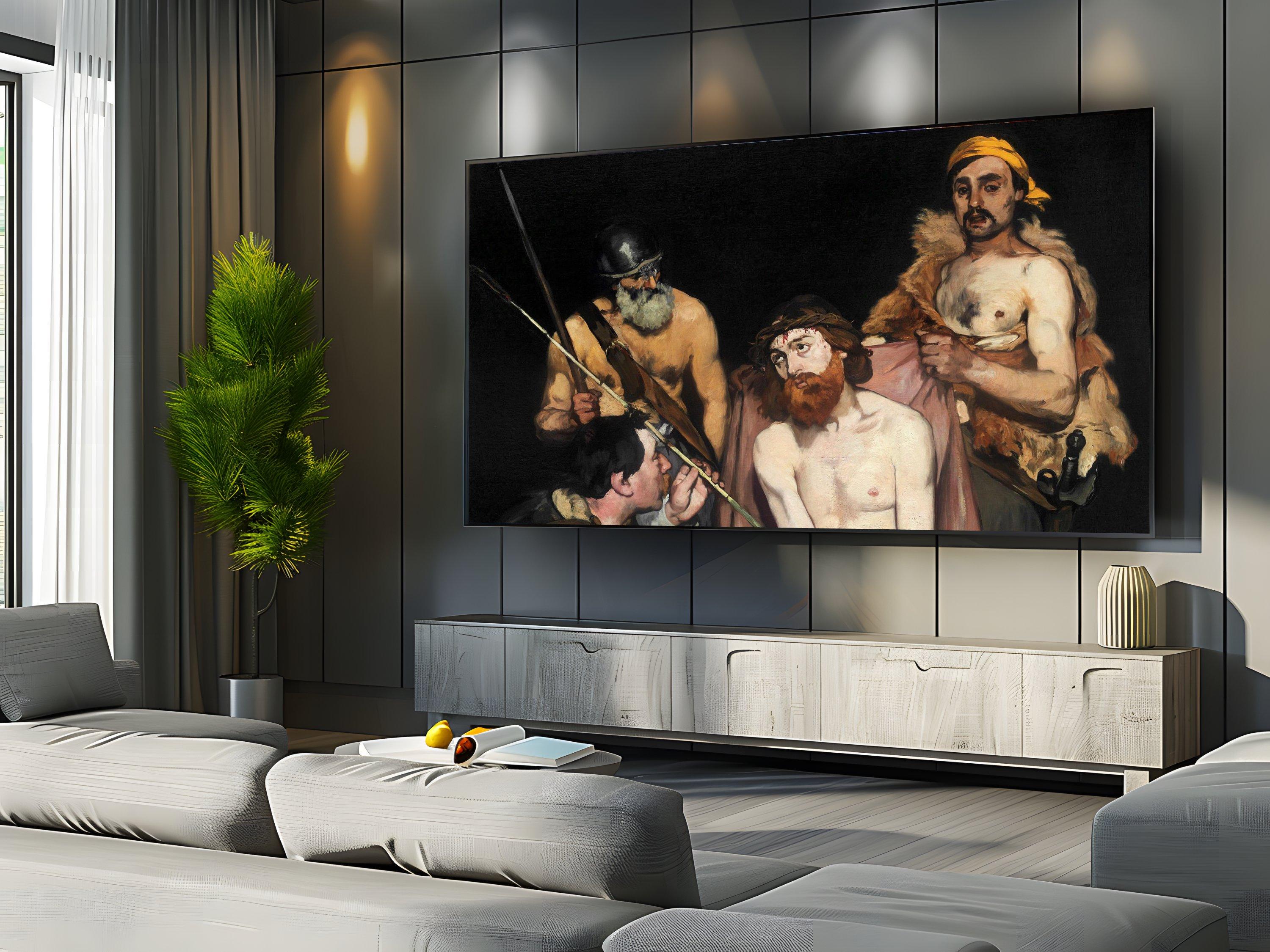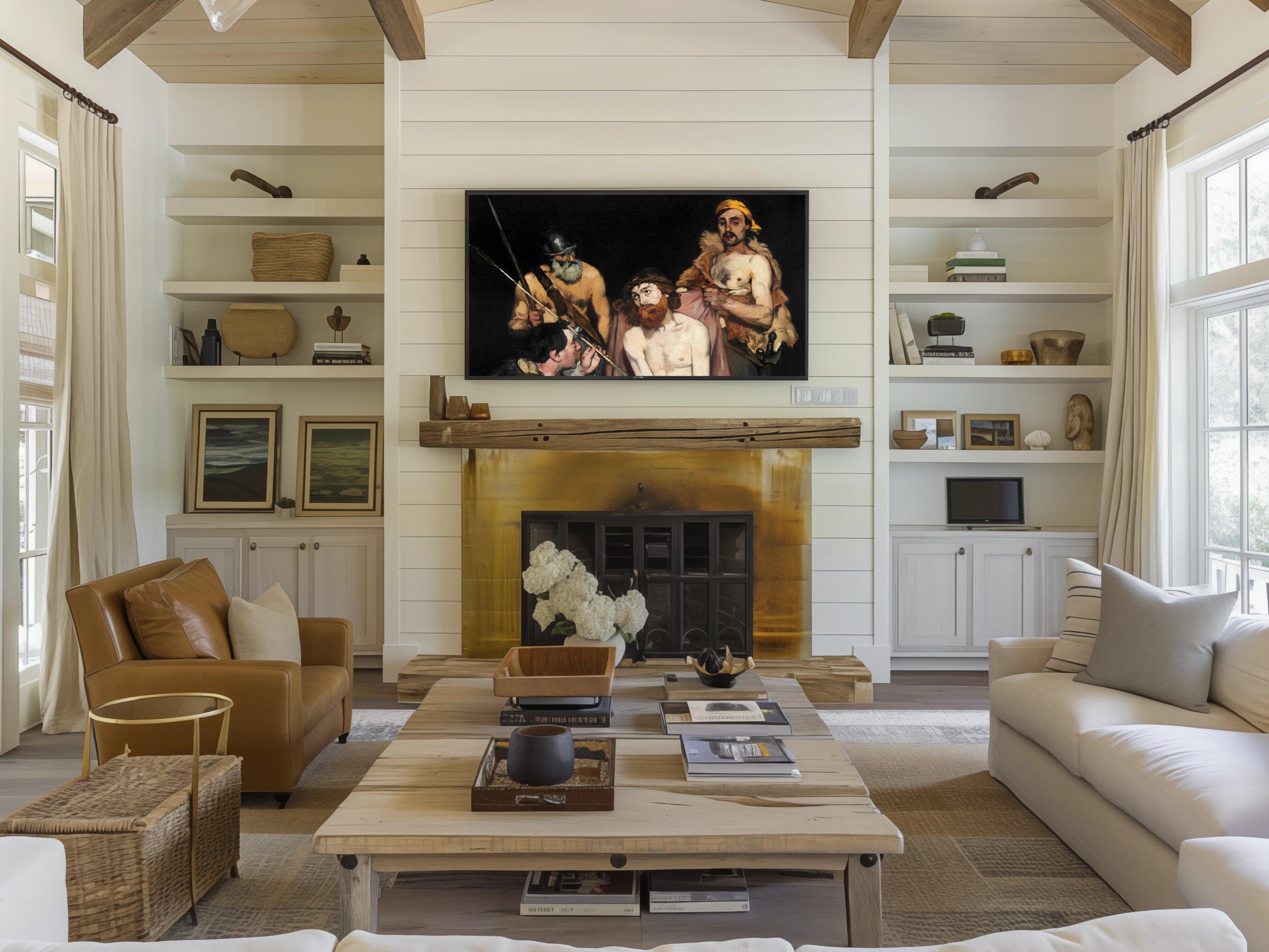 Step into a world of intense emotion and storytelling with this dramatic digital art piece, where four figures emerge from a dark palette that breathes life into every shadow. Inspired by classical scenes filled with tension and human expression, this artwork captures a moment rich with drama and depth, perfect for those who appreciate moody home wall art. Curated with care and designed for digital display, it offers an immersive experience ideal for Samsung Frame TVs and similar screens.