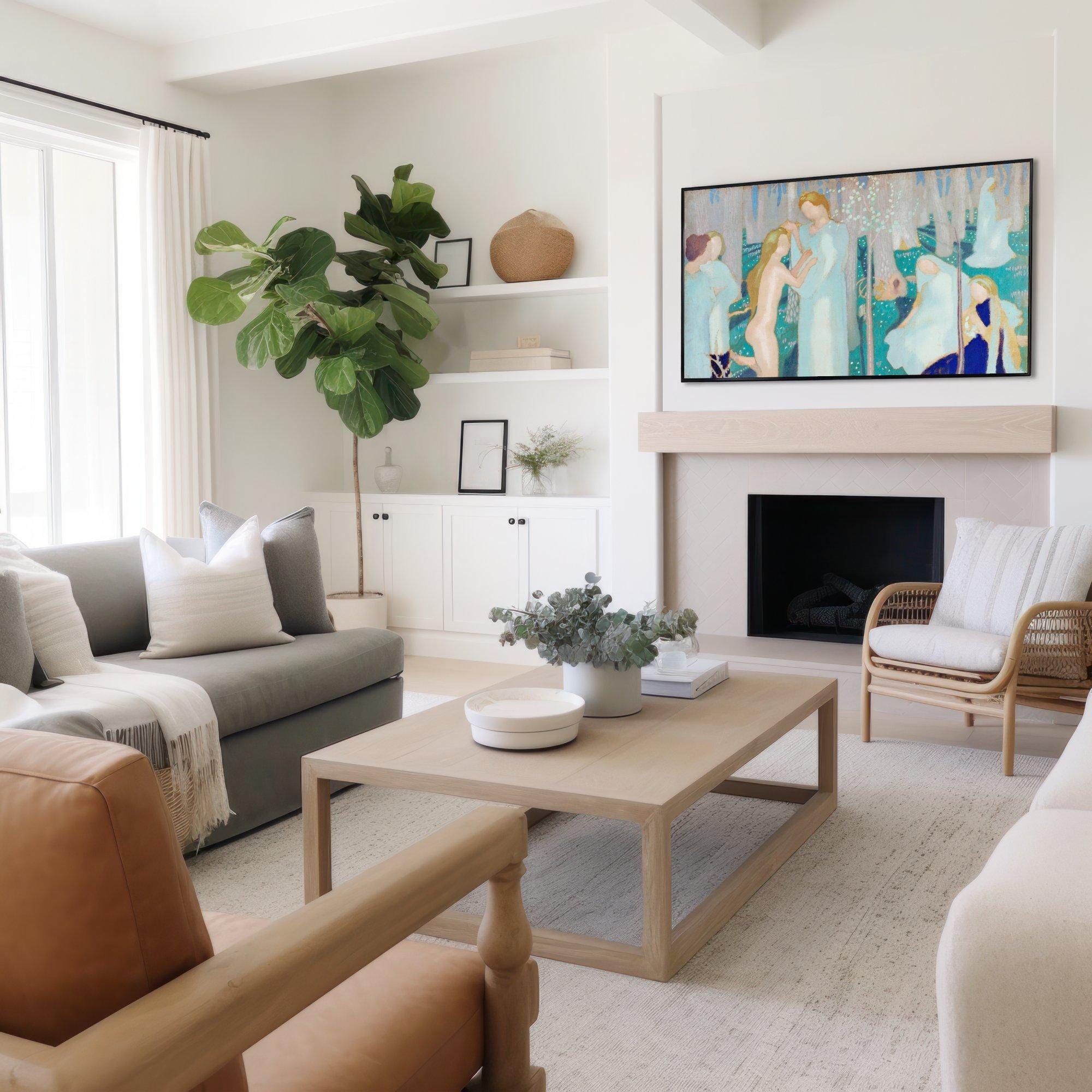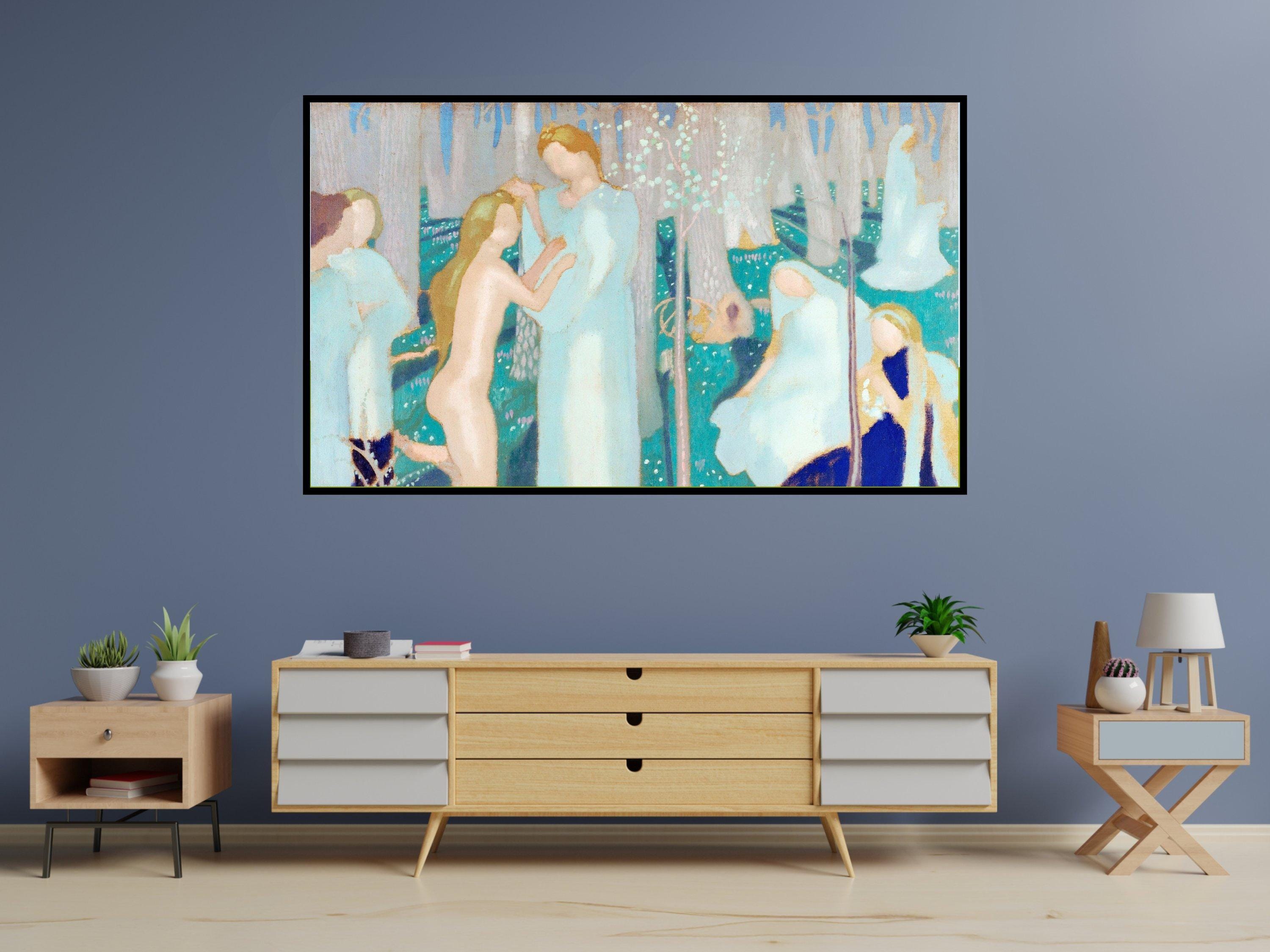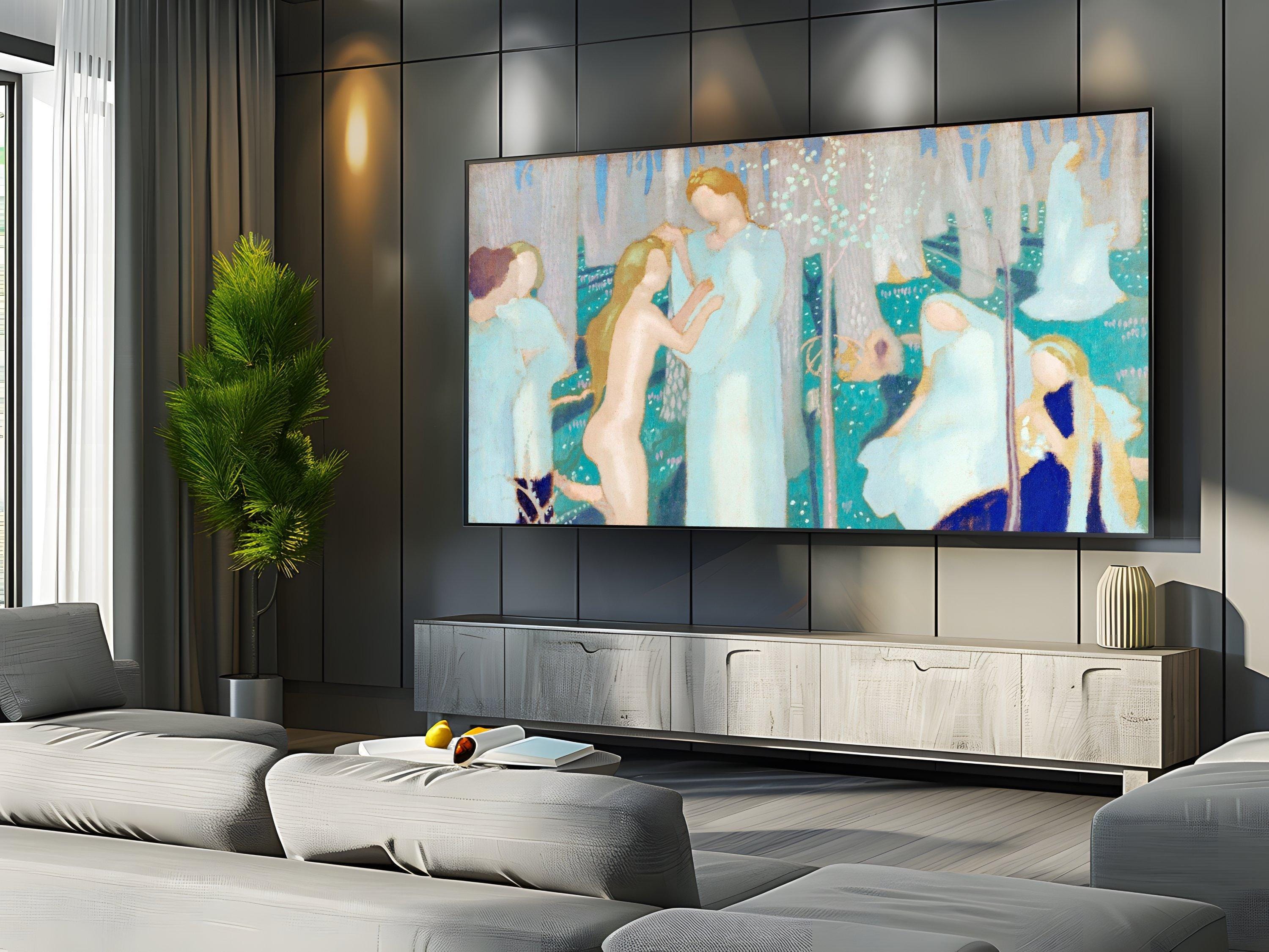 Immerse yourself in a serene escape with this digital wall art featuring tranquil green trees and flowing blue hues that evoke a peaceful home accent. Crafted with soft muted colors and fluid movement art, this piece brings a harmonious nature scene to your screen, perfect for meditation or quiet reflection. Curated through AI with thoughtful human refinement, it captures the delicate balance between imagination and the calming beauty of nature.