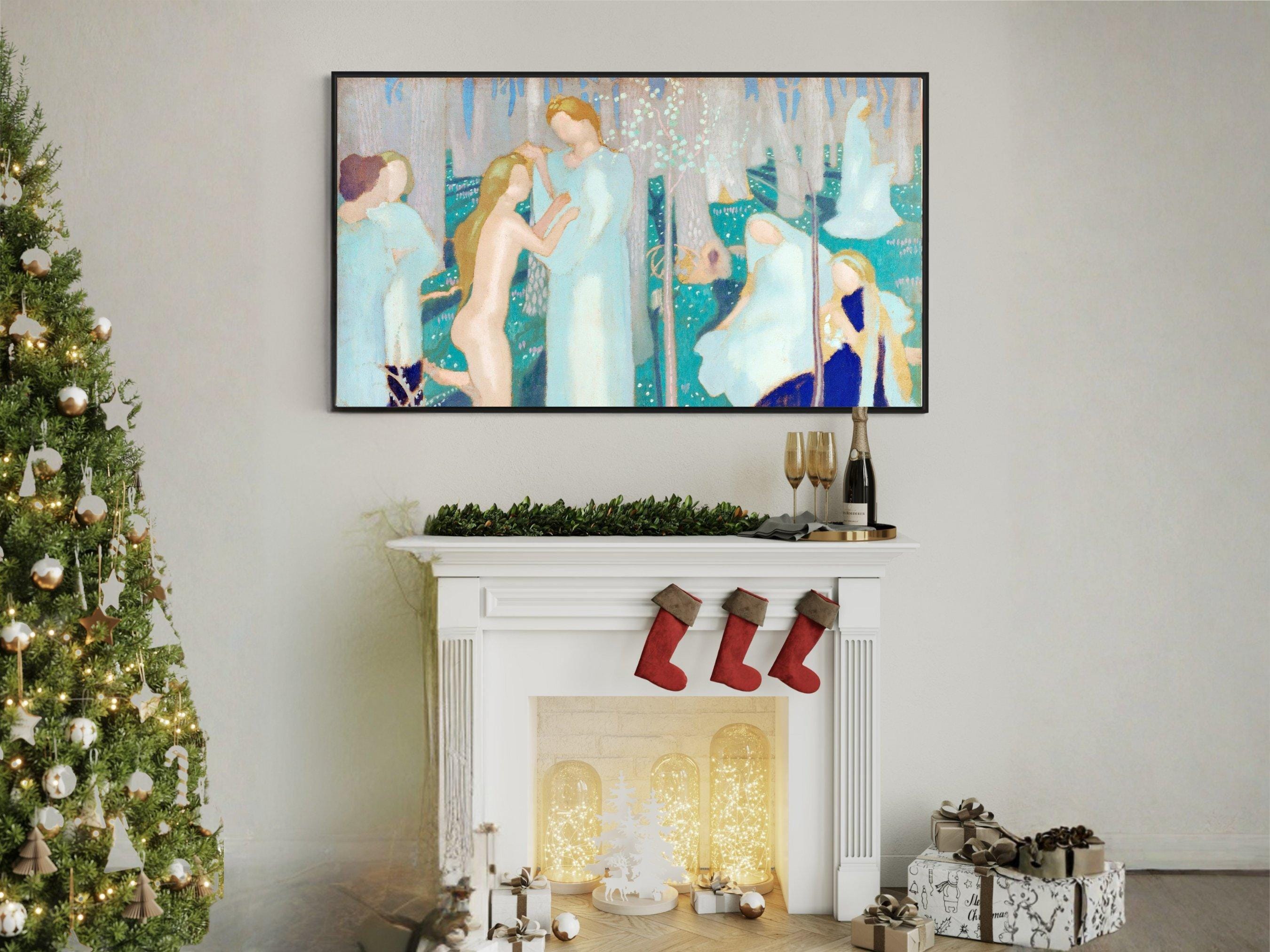 We provide a range of sizes for our digital products. For Digital Art Prints, the available sizes include 5"x7", 8"x10", 11"x14", 11"x17", 16"x20", 18"x24", 20"x30", 24"x36", and A2 (23.4"x16.5"). Our Seamless tile prints have a resolution of 300dpi and dimensions of 3600px x 3600px, equivalent to 12"x12". The Frame TV Art is in Ultra High Definition (UHD) with a resolution of 3840:2160, suitable for 16:9 ratio TVs. All our products are digital downloads and can be instantly accessed after purchase.