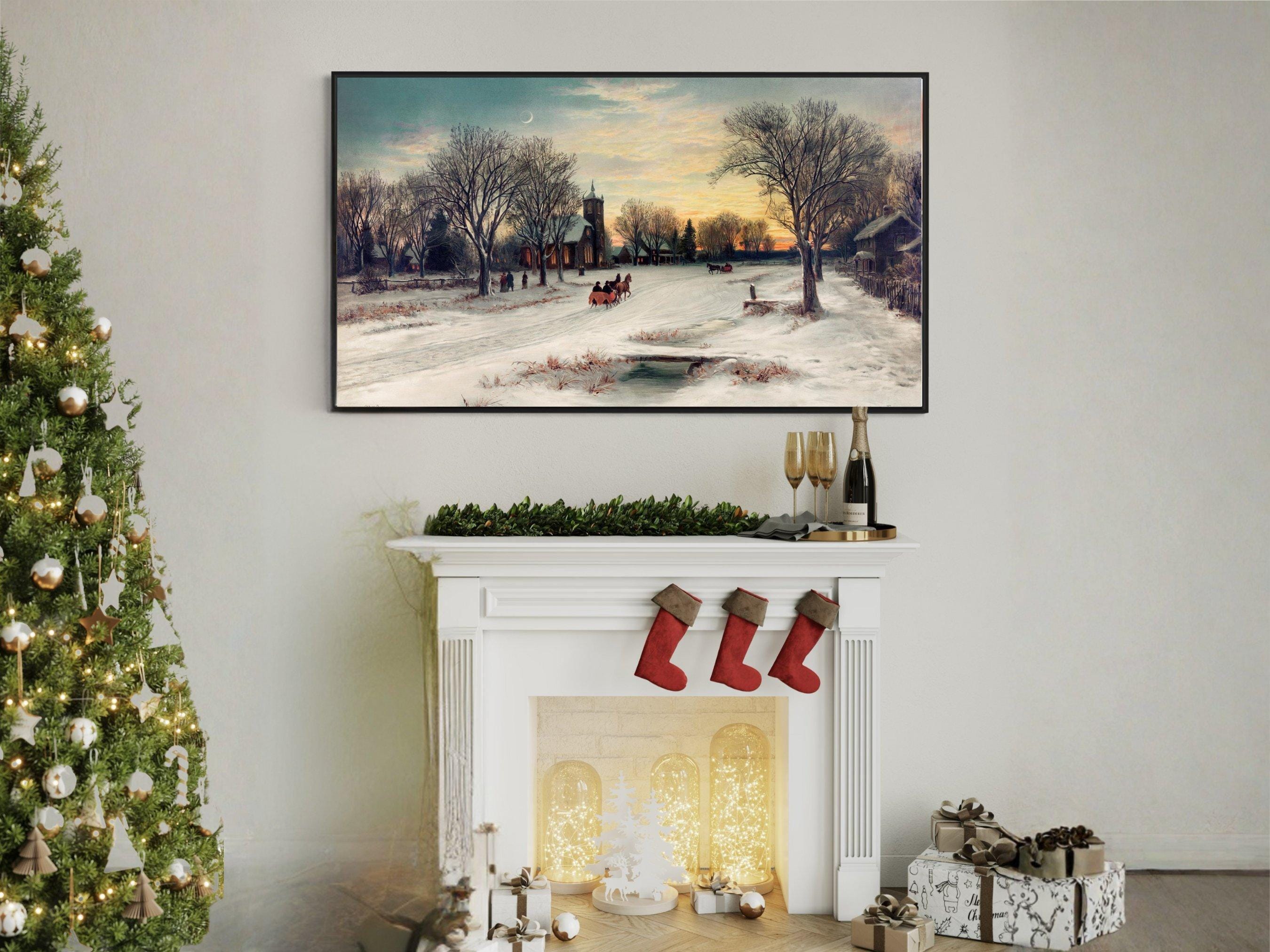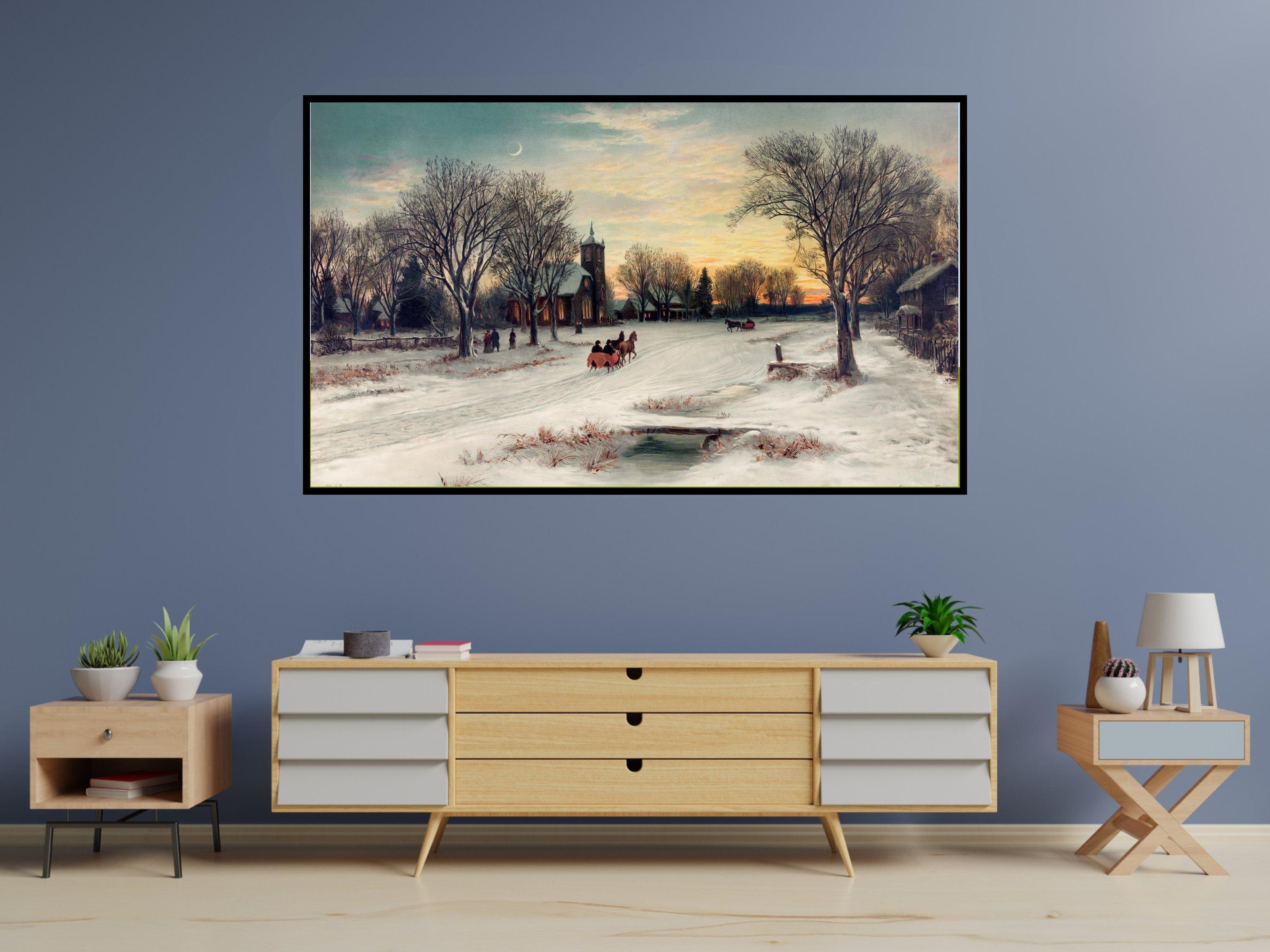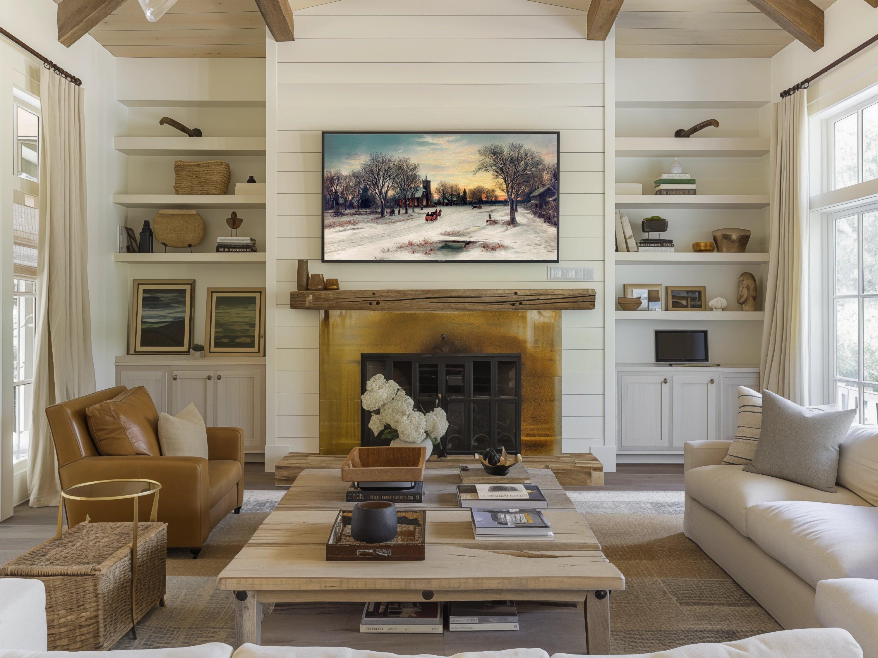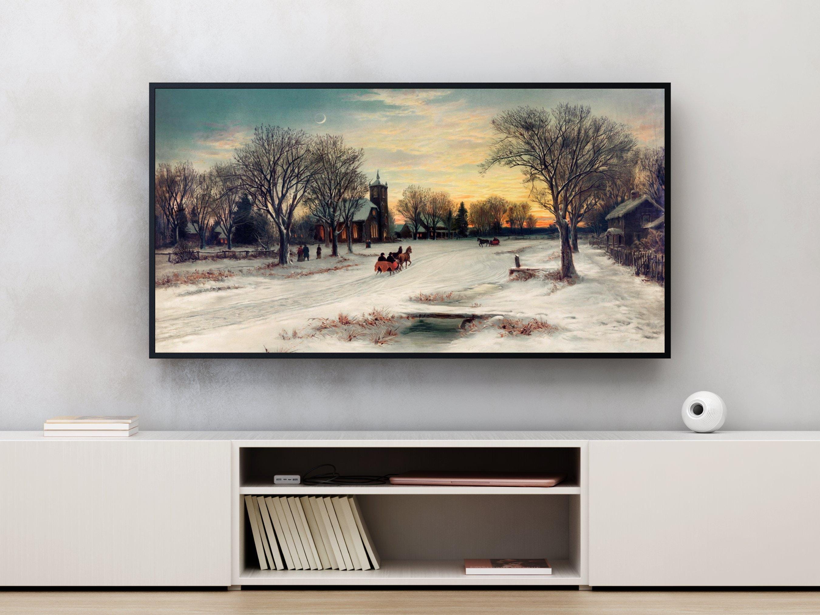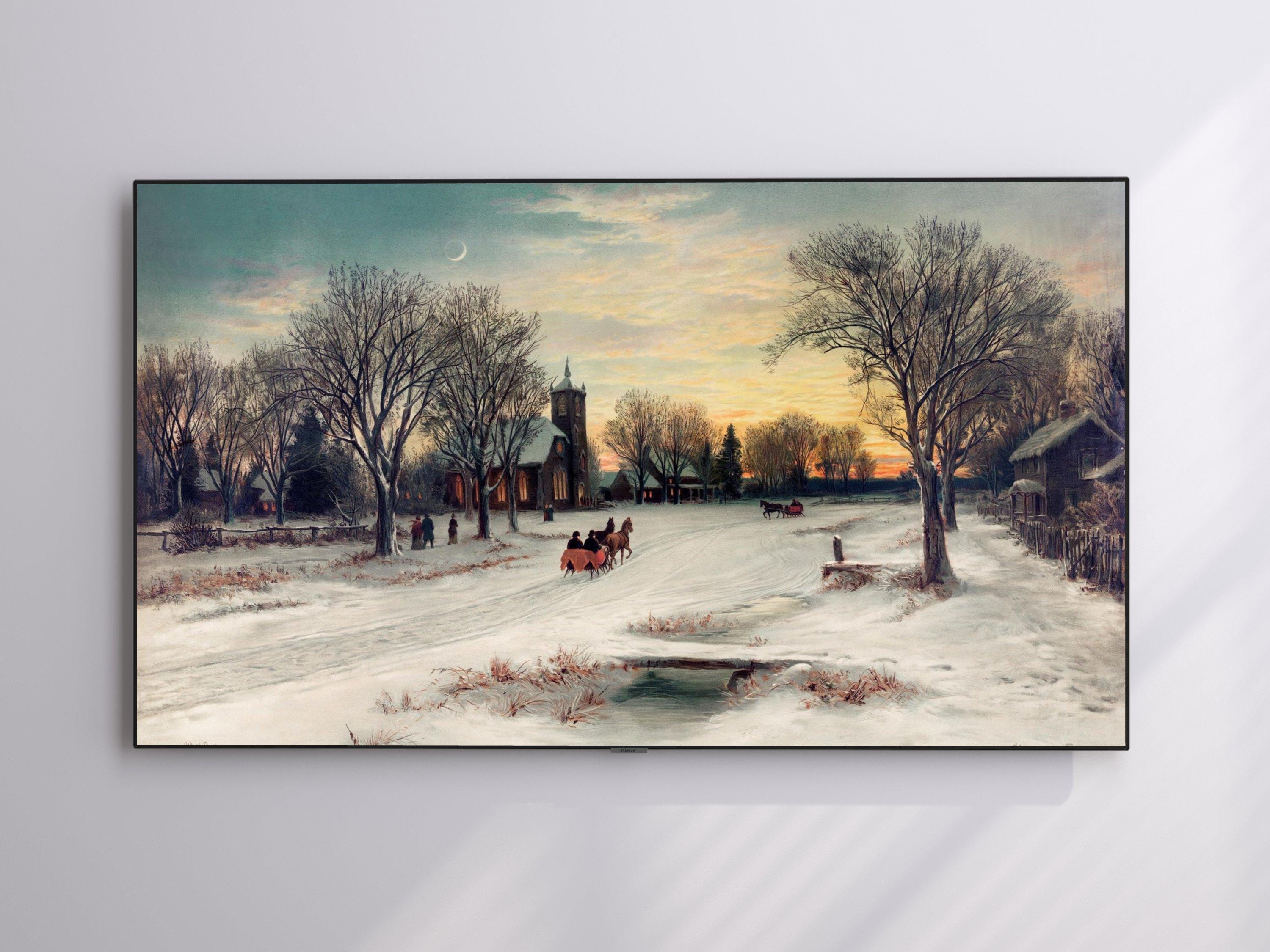 Experience the quiet magic of a serene snowy evening with this digital download art featuring a cozy church steeple nestled in a rustic village charm. The snow-covered path and twilight sky colors invite you to wander through a peaceful rural scene, evoking calm nostalgic art feelings. Perfectly crafted for Samsung Frame Art and other digital displays, this winter village scene brings warmth and tranquility to your space.