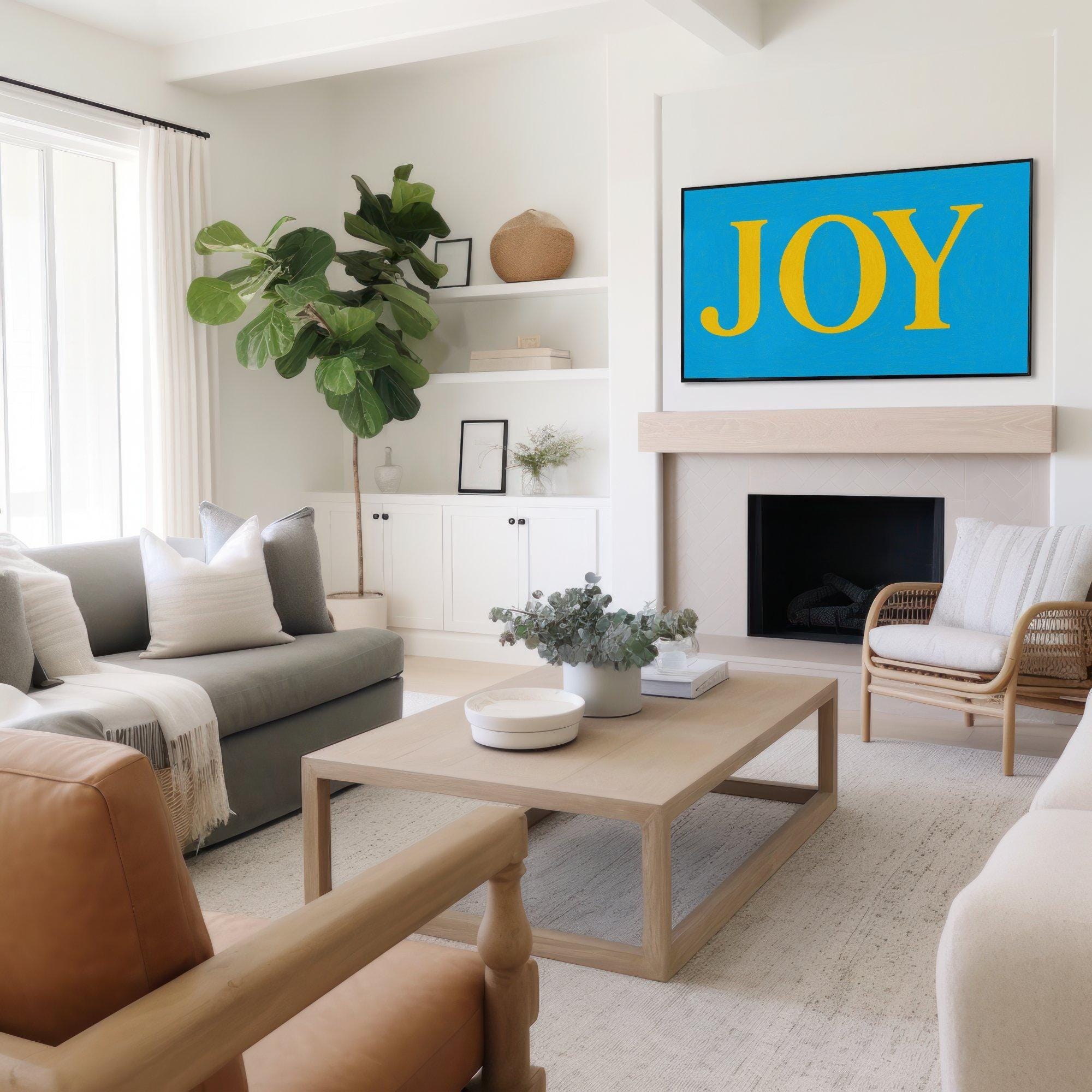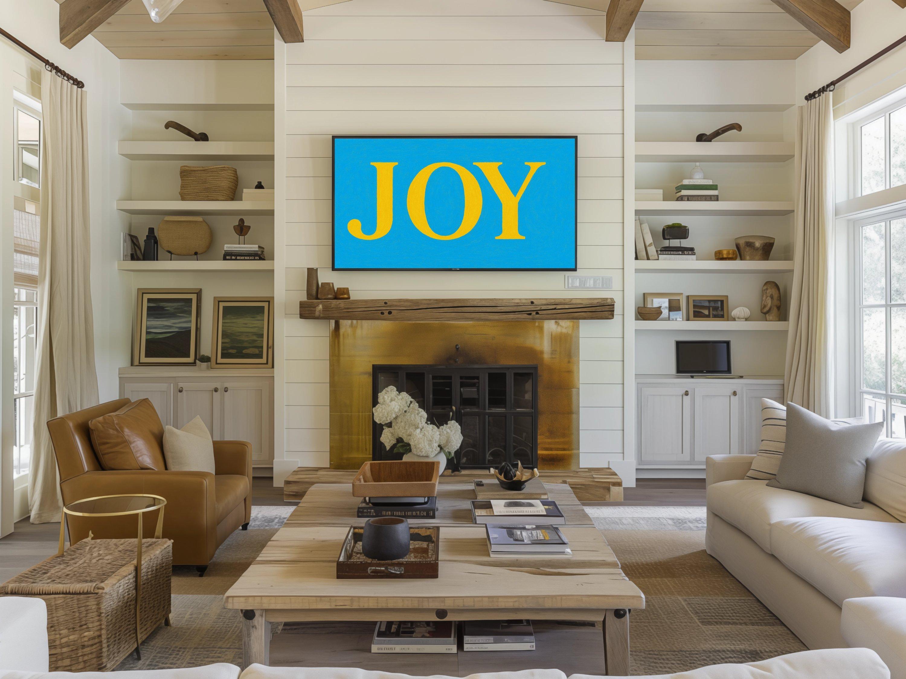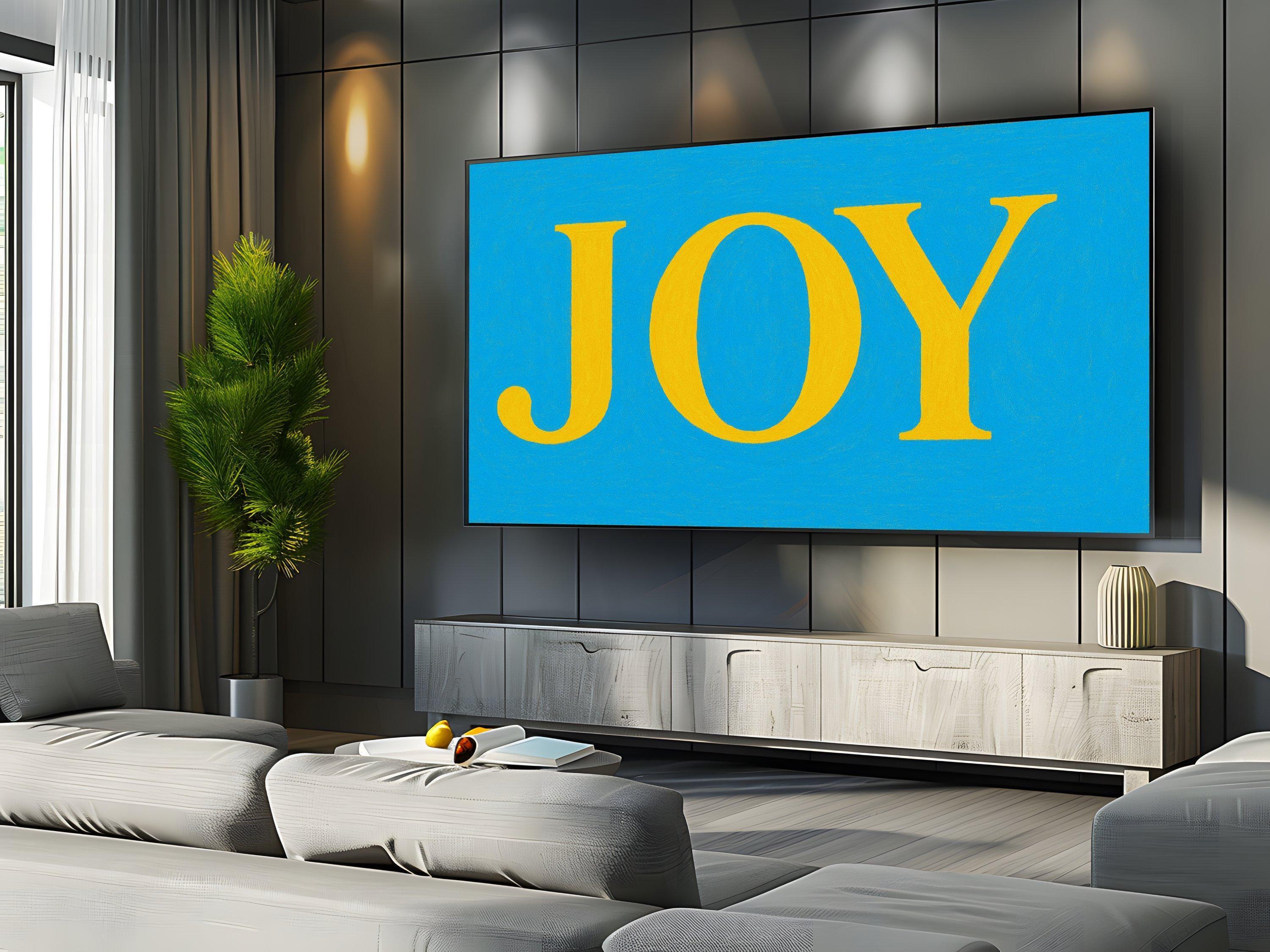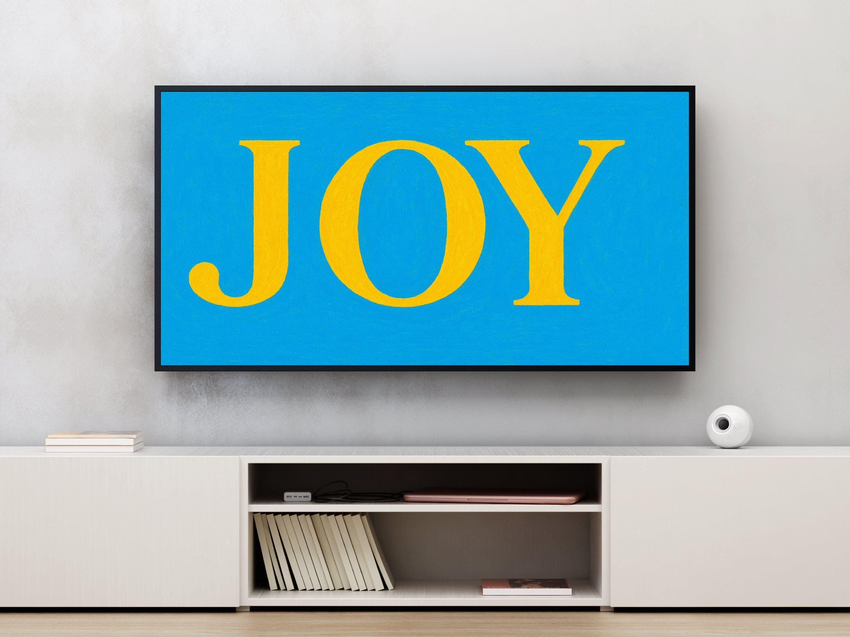 Infuse your living space with vibrant color and joyful energy through this digital download art designed specifically for Samsung Frame TV. Featuring bold yellow letters on a clean blue background, this cheerful screen decor brings positive wall art inspiration and a burst of joy art vibrant charm to any room. Crafted as a high-resolution 4K UHD screensaver, it transforms your TV into a captivating focal point with instant download convenience.